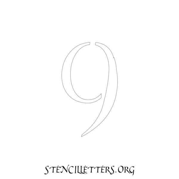 Printable Individual 0-9 Number stencils design 149 Cursive in 2 inch numbers high-resolution templates size.