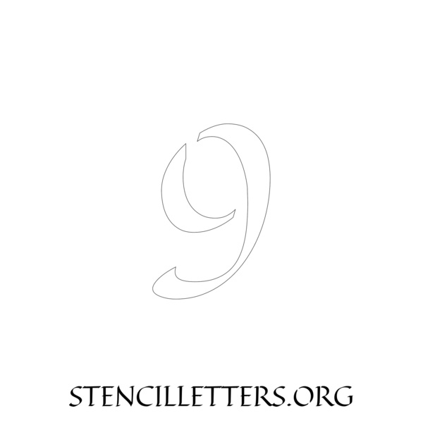 Printable Individual 0-9 Number stencils 169 Calligraphy - 2 Inch Numbers