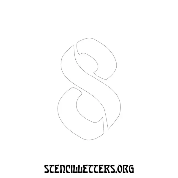 Printable Individual 0-9 Number stencils design 198 Art Nouveau in 2 inch numbers high-resolution templates size.