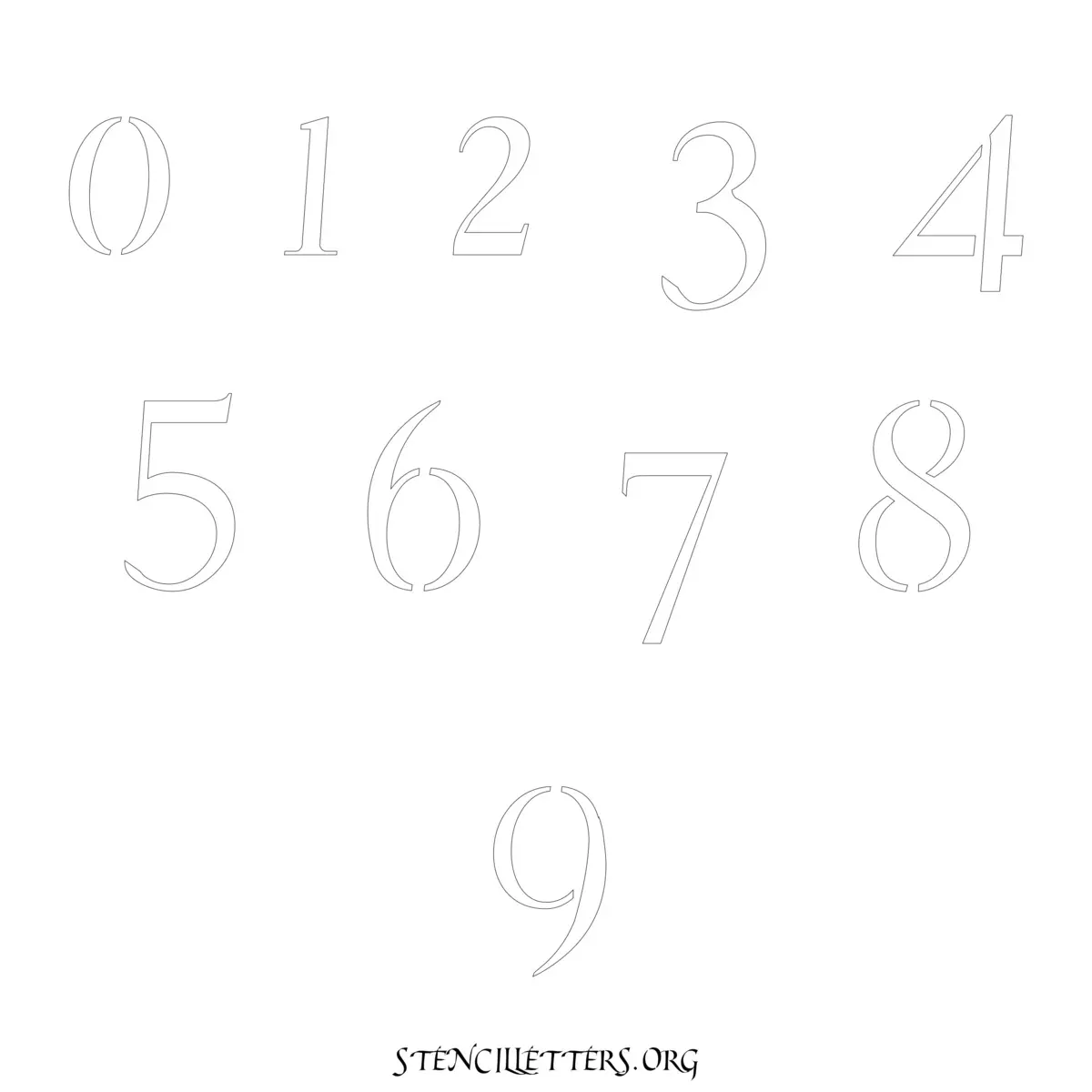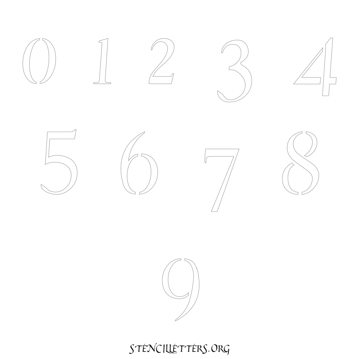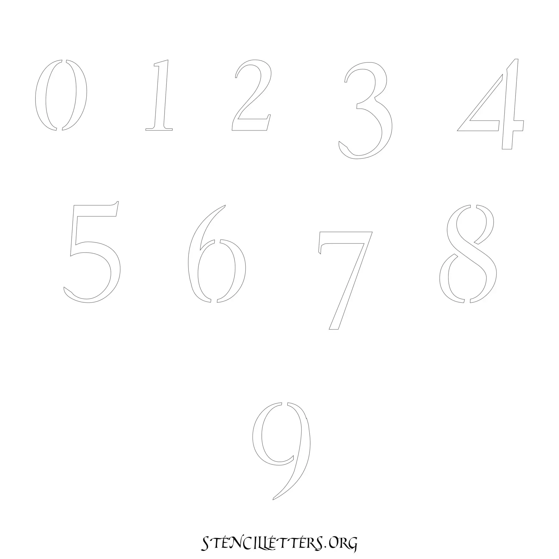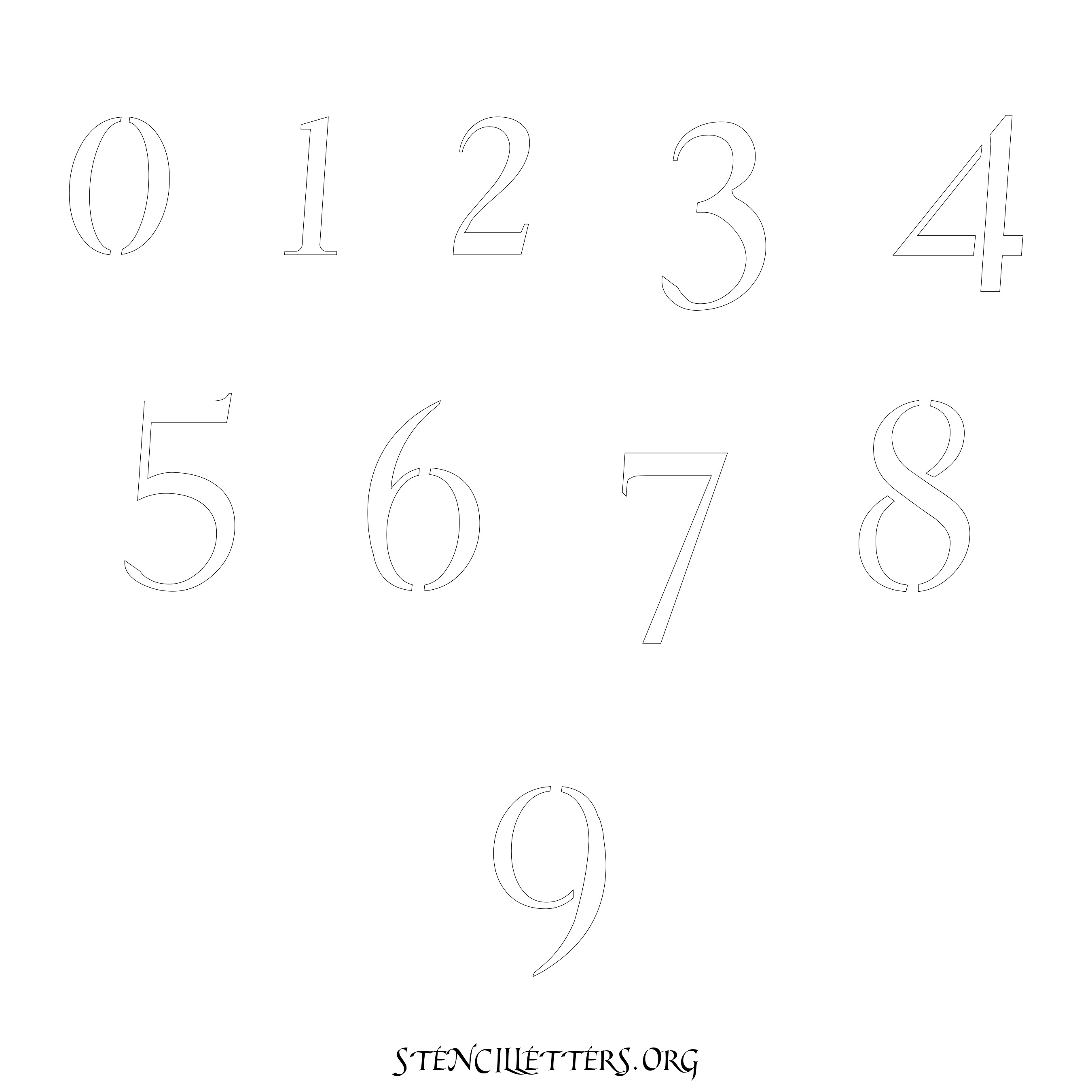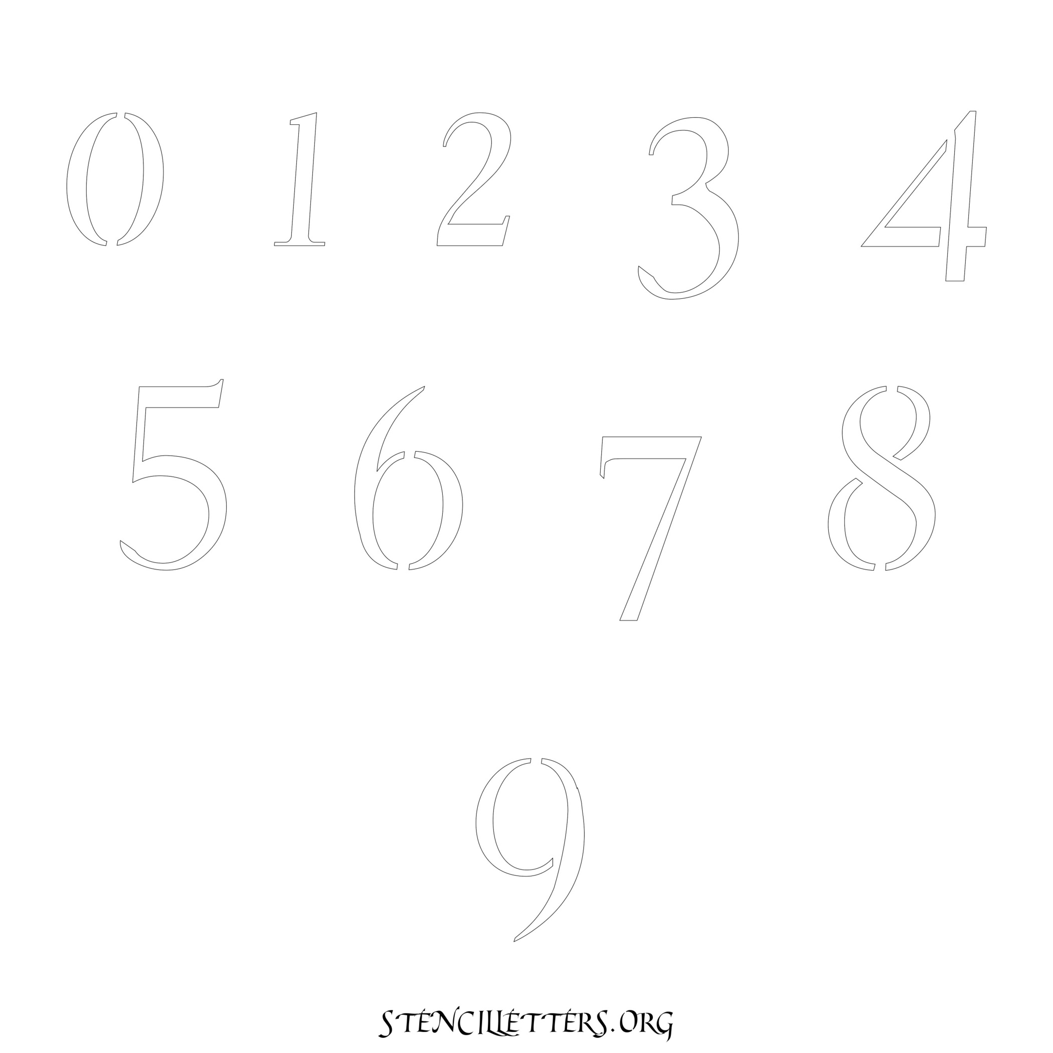 Stencil Design 149 Cursive. Print these free numbers stencils and make your own DIY templates for your stenciling projects. Available in high resolution printable sizes: 4 Inch, 5 Inch, 6 Inch, 7 Inch, 8 Inch, 9 Inch and 10 Inch.