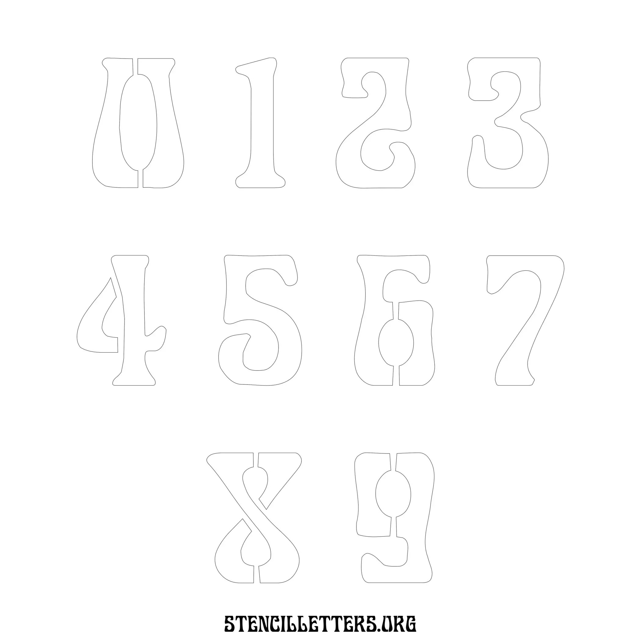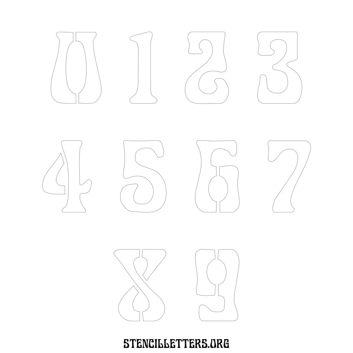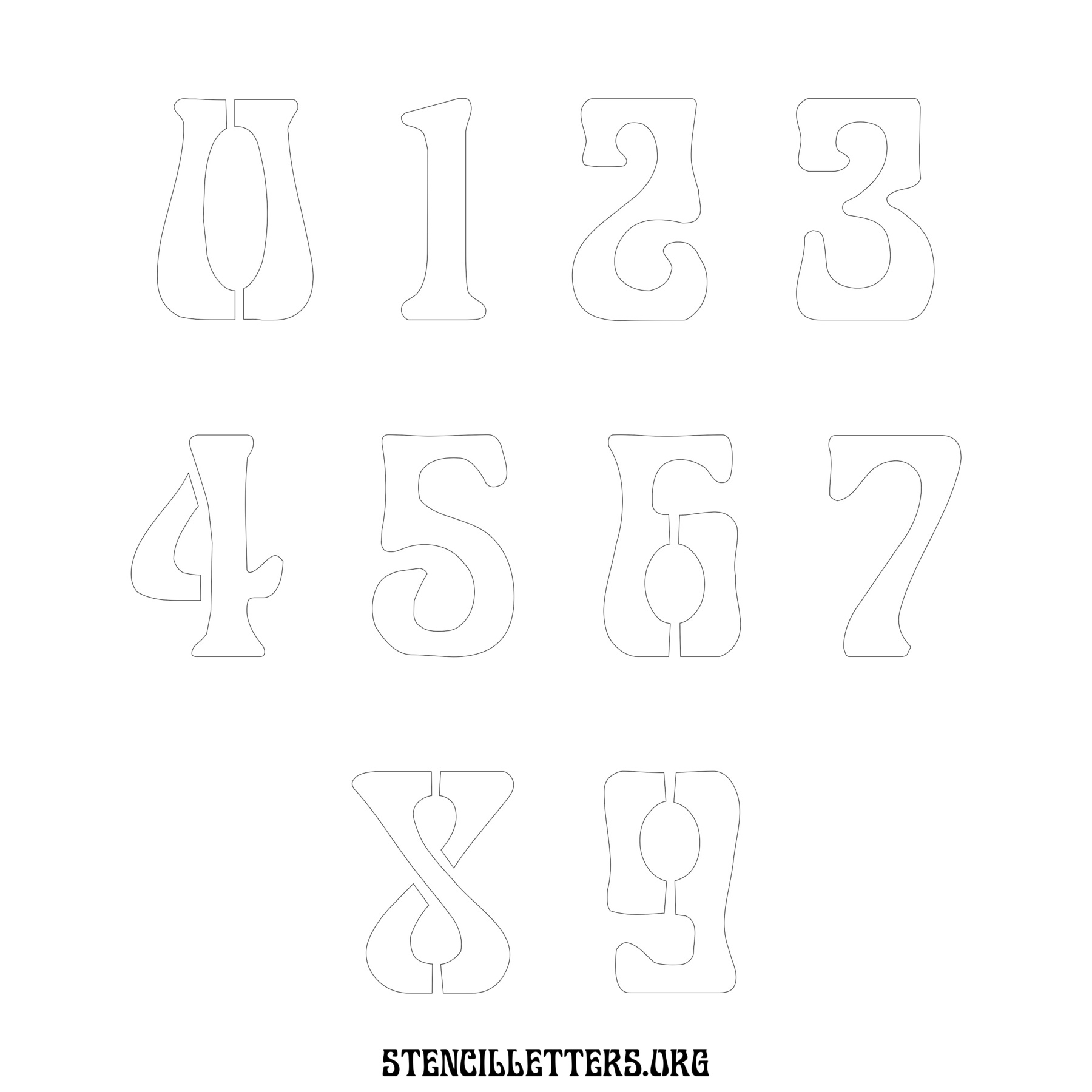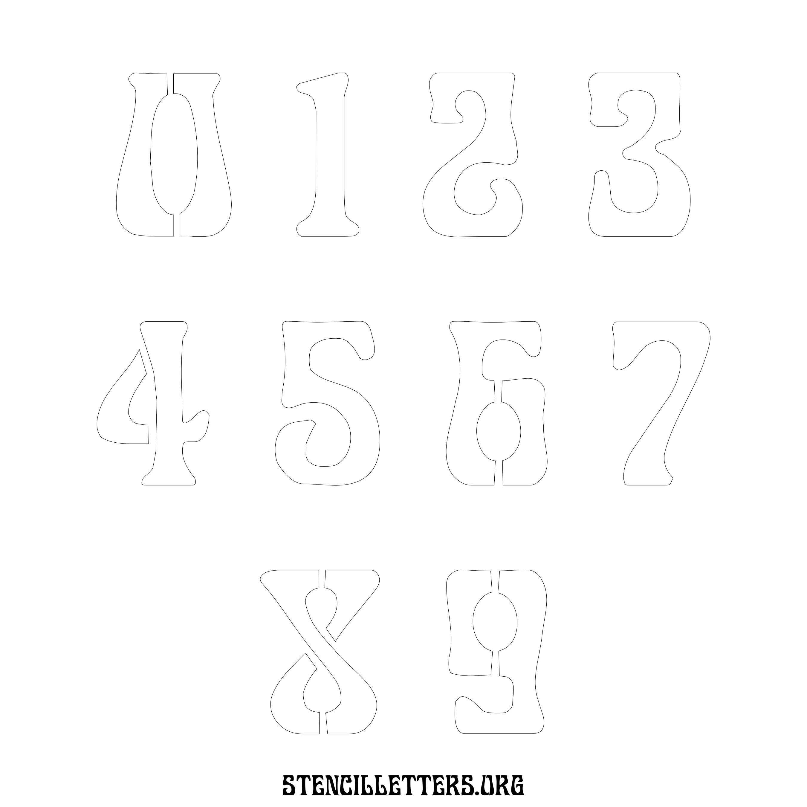 Stencil Design 191 Art Nouveau. Print these free numbers stencils and make your own DIY templates for your stenciling projects. Available in high resolution printable sizes: 4 Inch, 5 Inch, 6 Inch, 7 Inch, 8 Inch, 9 Inch and 10 Inch.