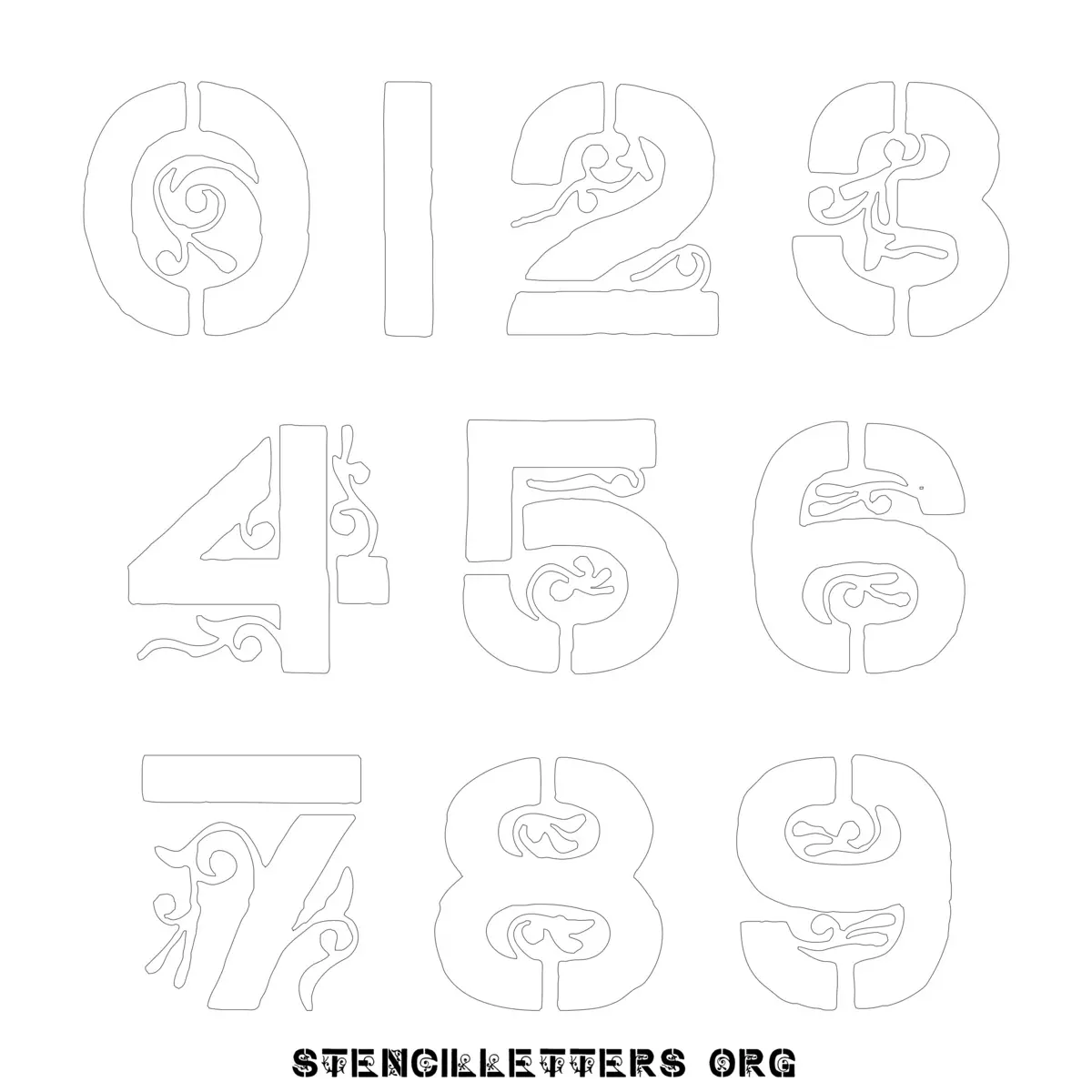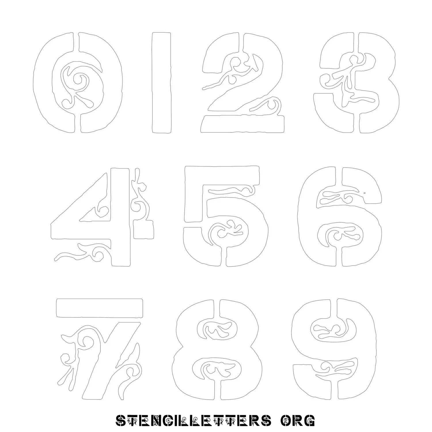 Stencil Design 223 Gothic. Print these free numbers stencils and make your own DIY templates for your stenciling projects. Available in high resolution printable sizes: 4 Inch, 5 Inch, 6 Inch, 7 Inch, 8 Inch, 9 Inch and 10 Inch.