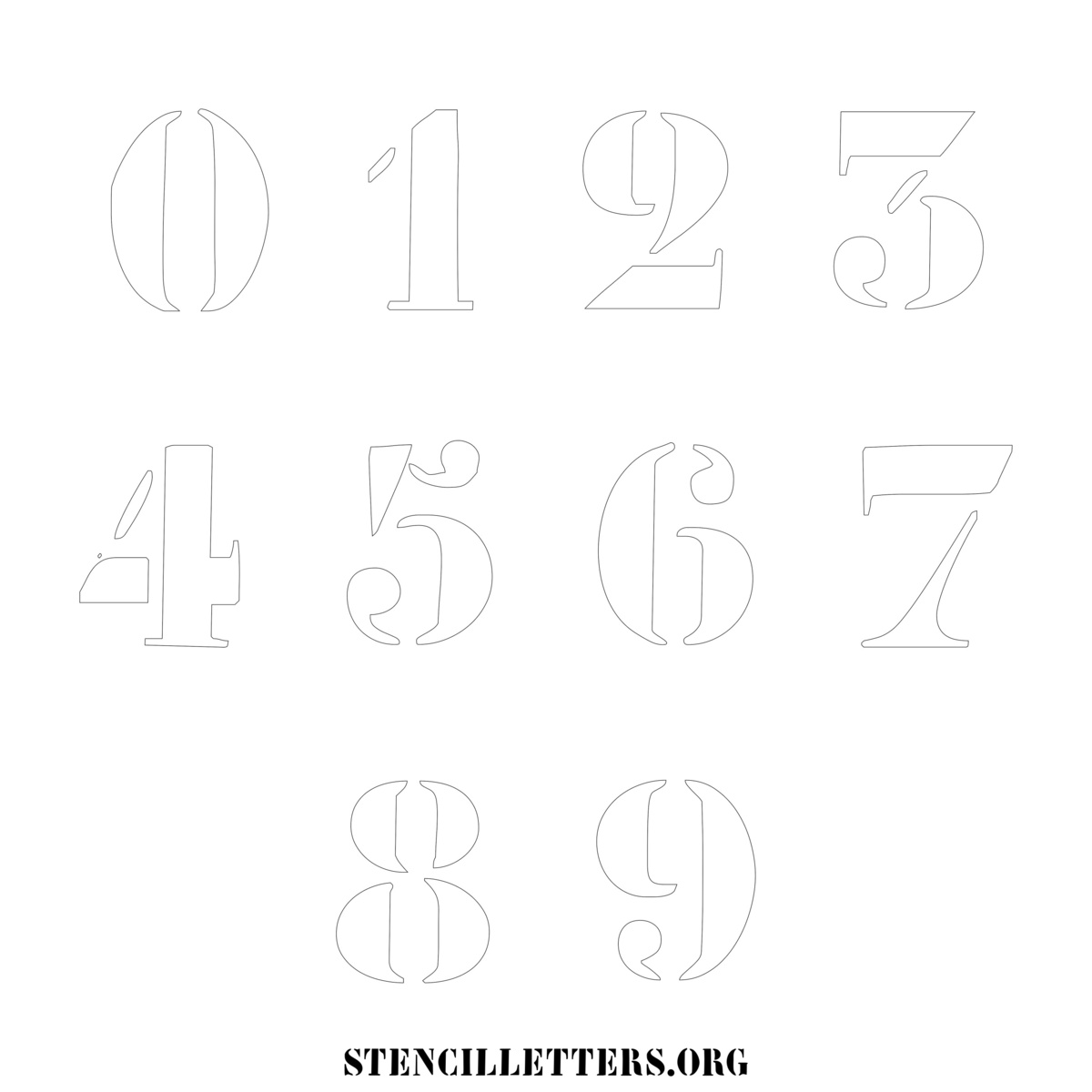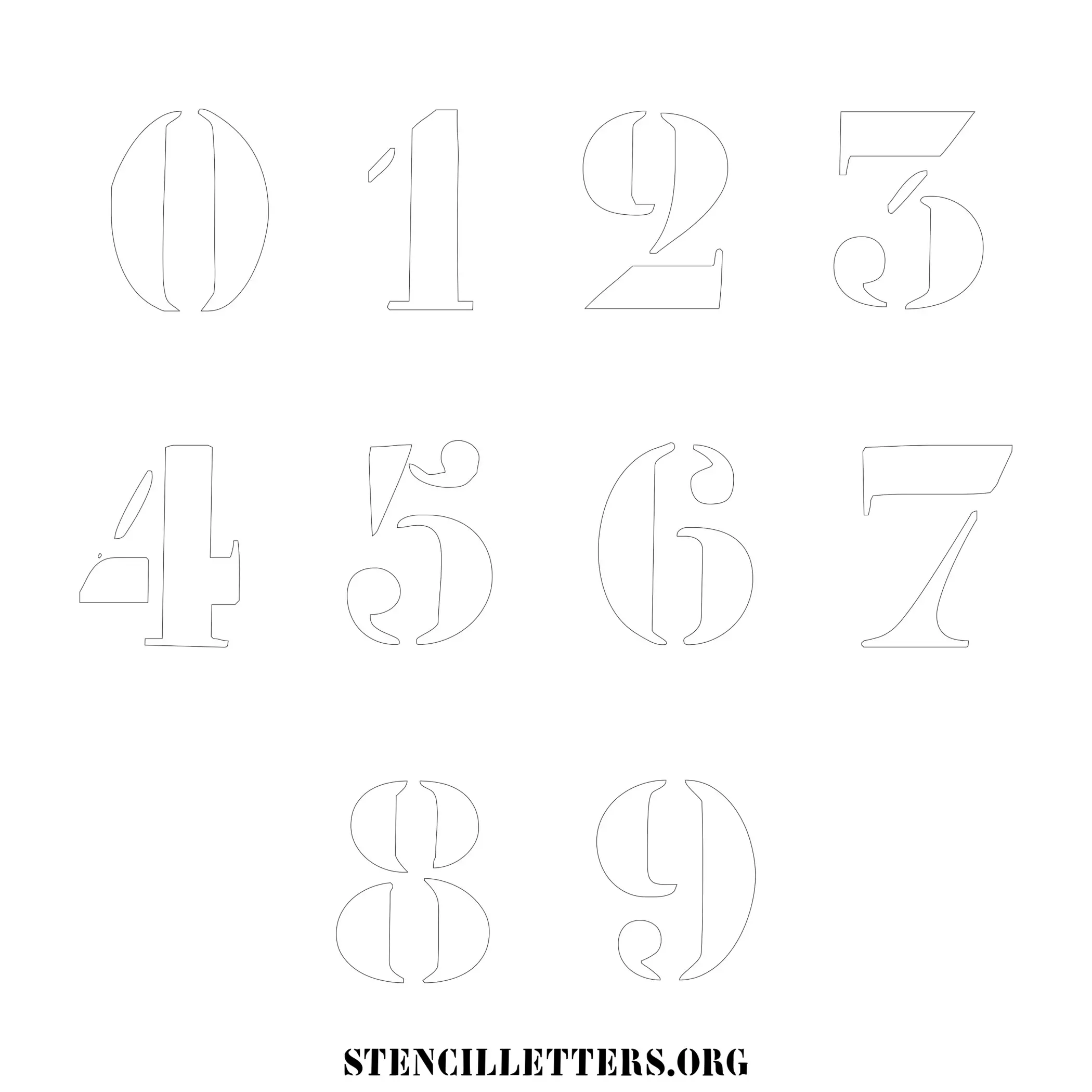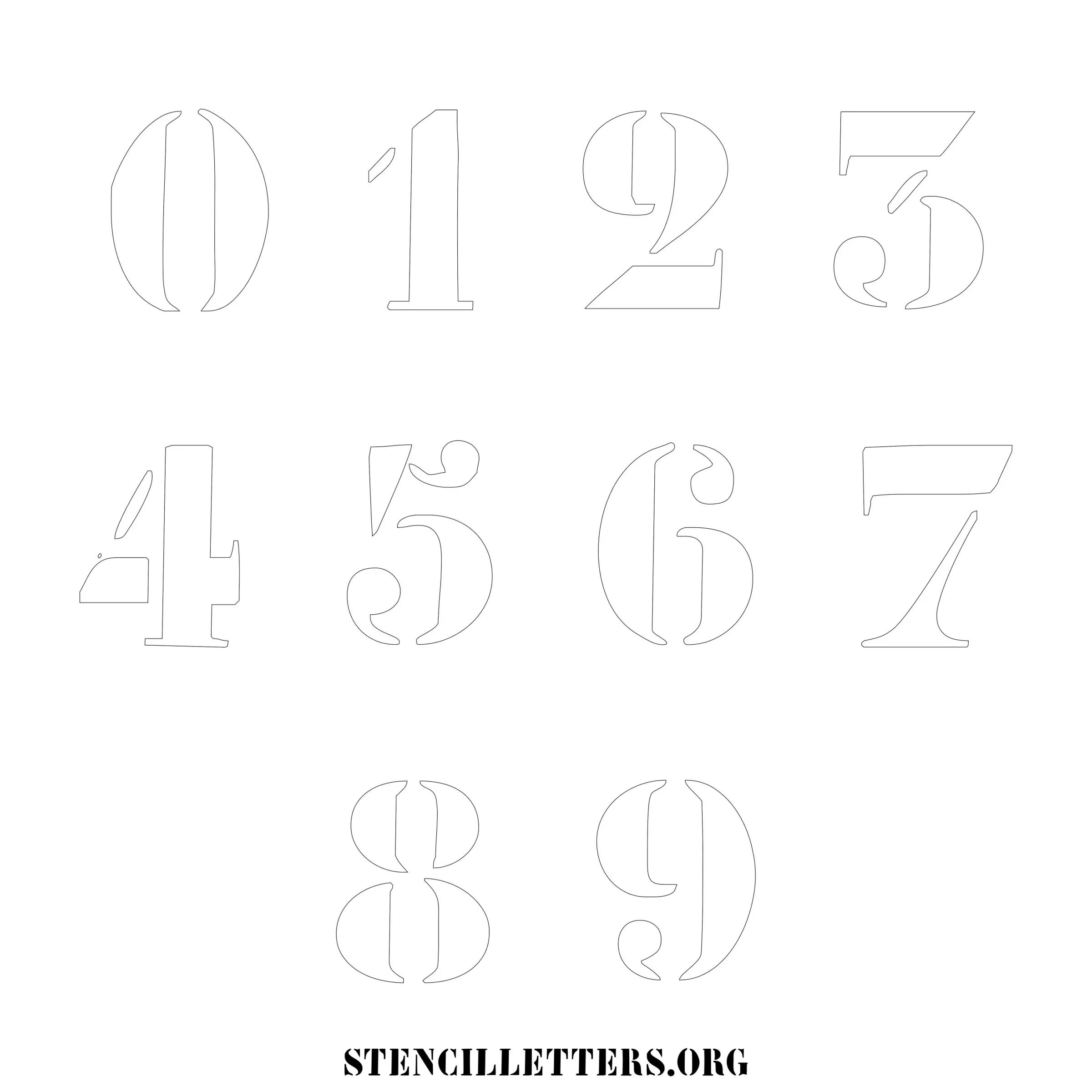 Stencil Design 237 Elegant Artistic. Print these free numbers stencils and make your own DIY templates for your stenciling projects. Available in high resolution printable sizes: 4 Inch, 5 Inch, 6 Inch, 7 Inch, 8 Inch, 9 Inch and 10 Inch.