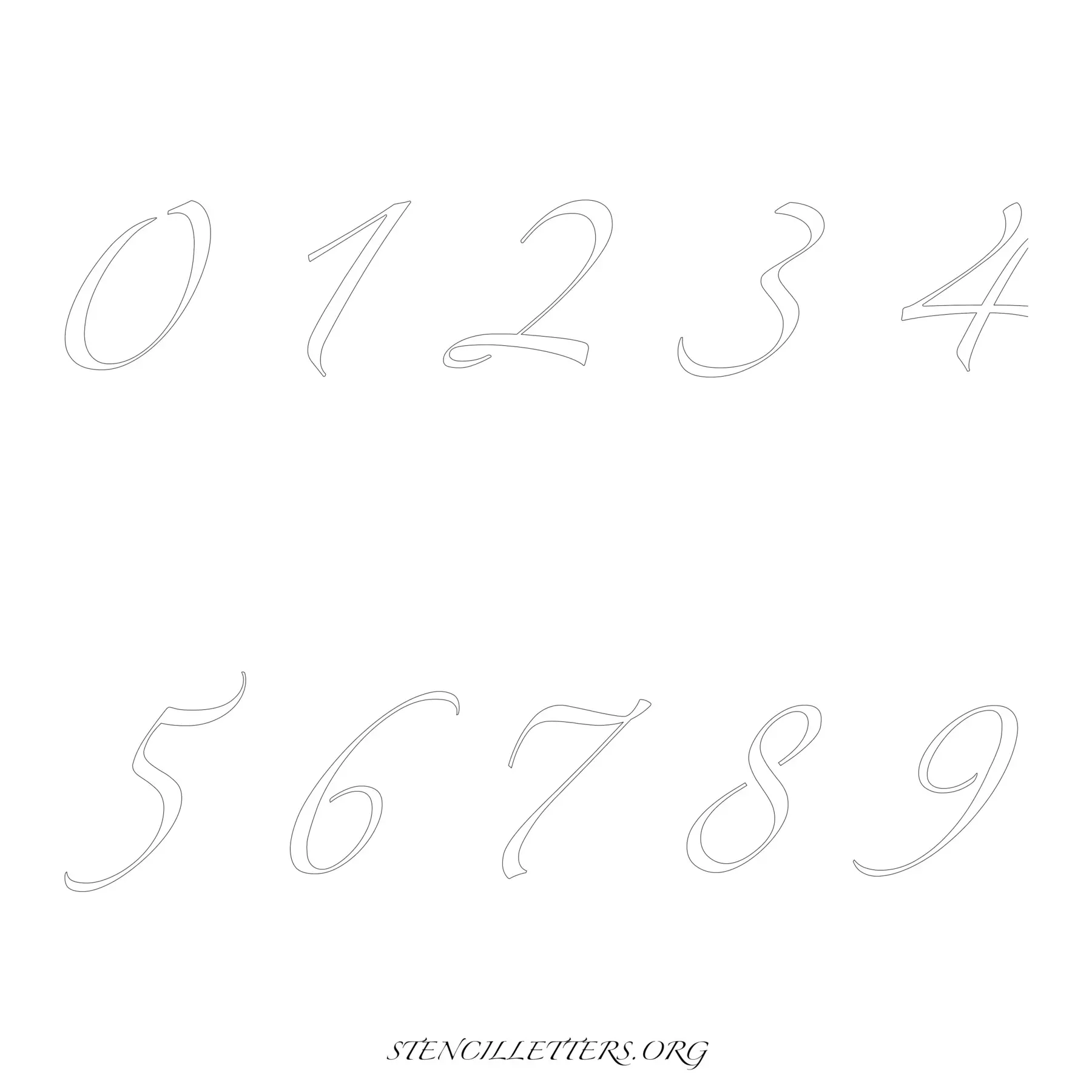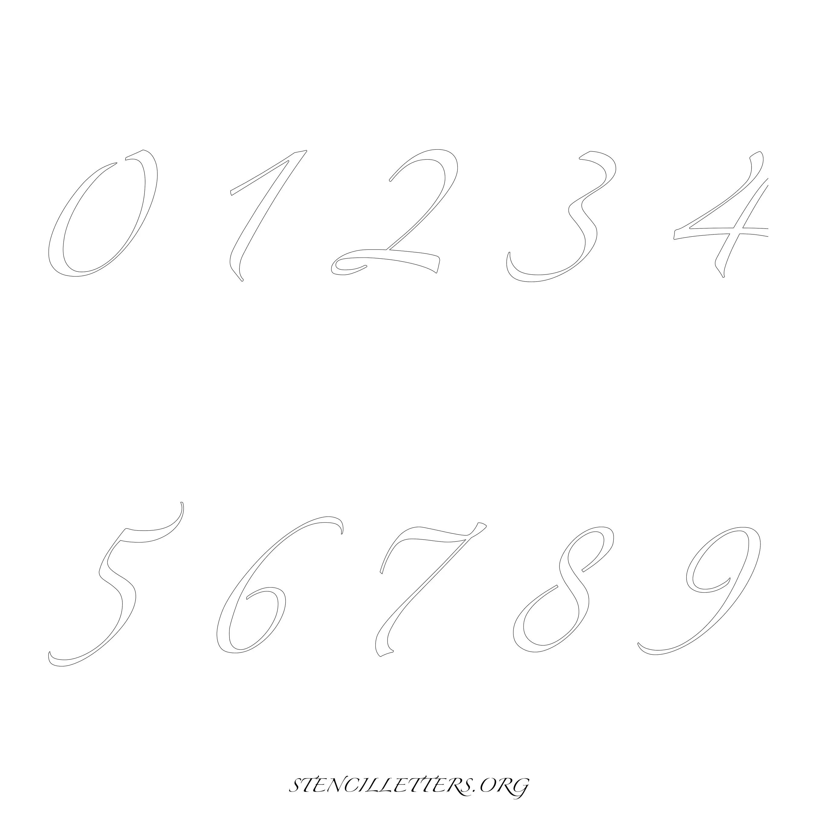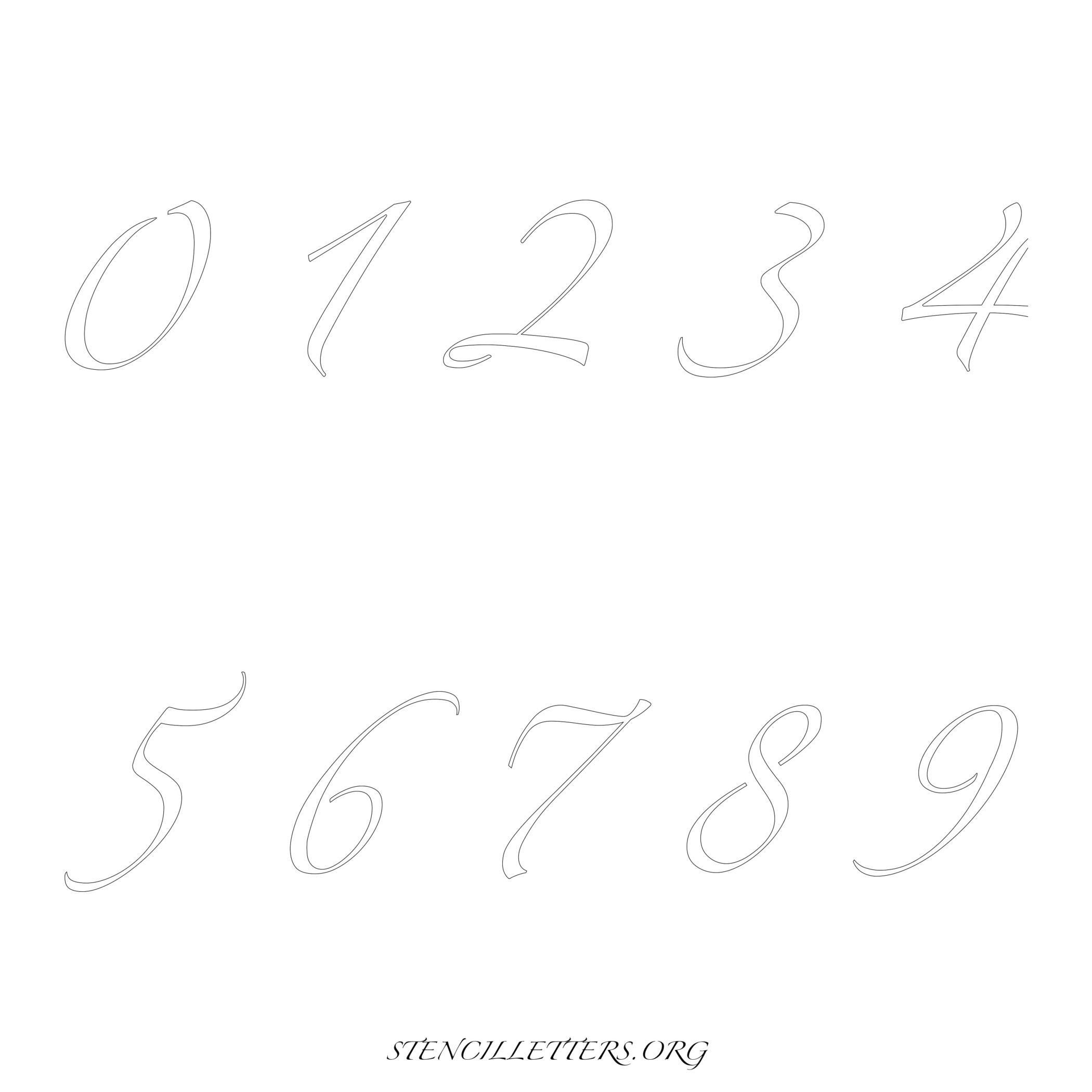 Stencil Design 271 Cursive. Print these free numbers stencils and make your own DIY templates for your stenciling projects. Available in high resolution printable sizes: 4 Inch, 5 Inch, 6 Inch, 7 Inch, 8 Inch, 9 Inch and 10 Inch.