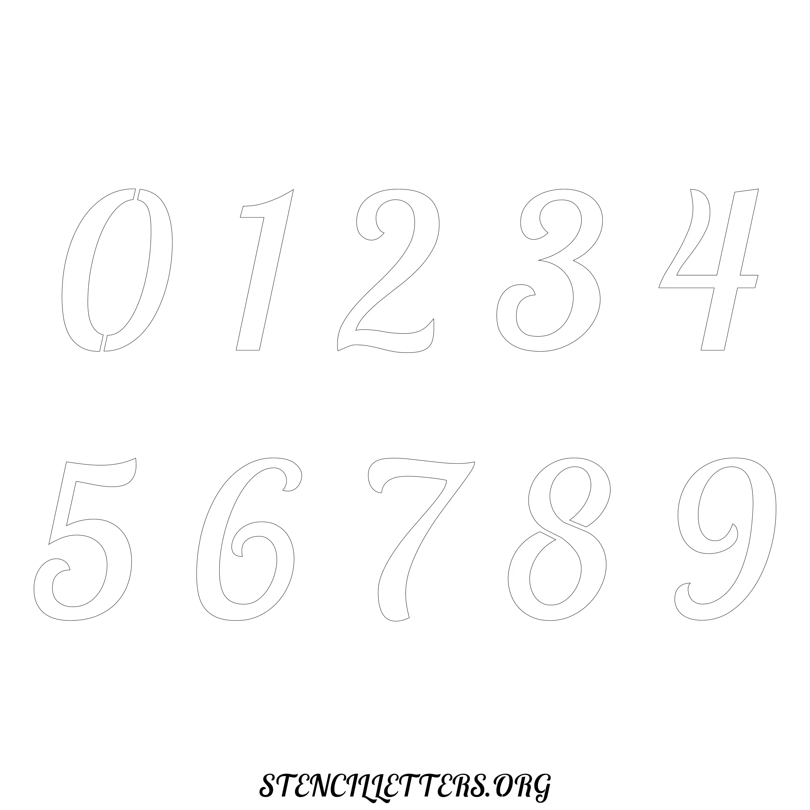 Stencil Design 45 Italic. Print these free numbers stencils and make your own DIY templates for your stenciling projects. Available in high resolution printable sizes: 4 Inch, 5 Inch, 6 Inch, 7 Inch, 8 Inch, 9 Inch and 10 Inch.