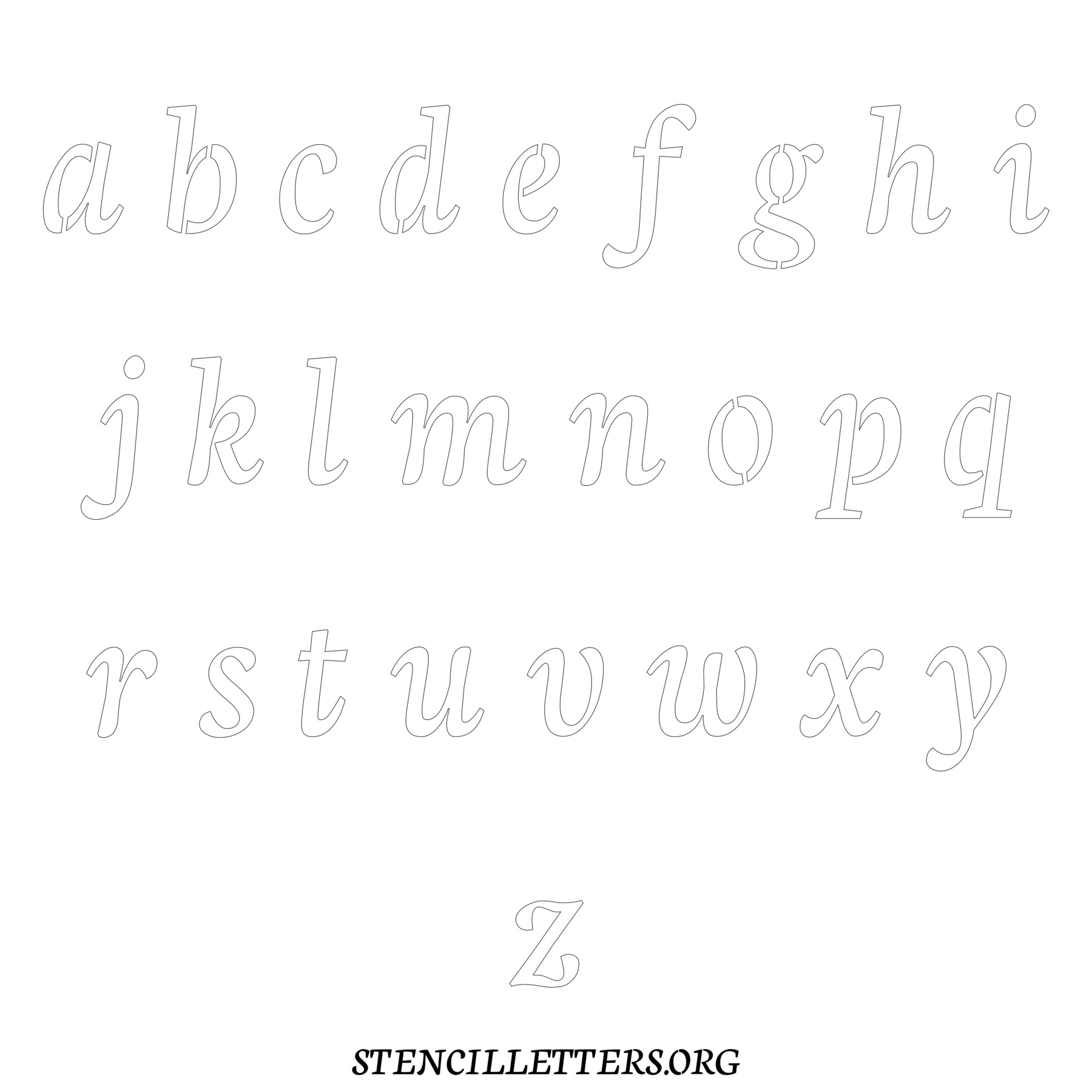 Printable Lowercase Alphabet Stencils - Design 146 Cursive