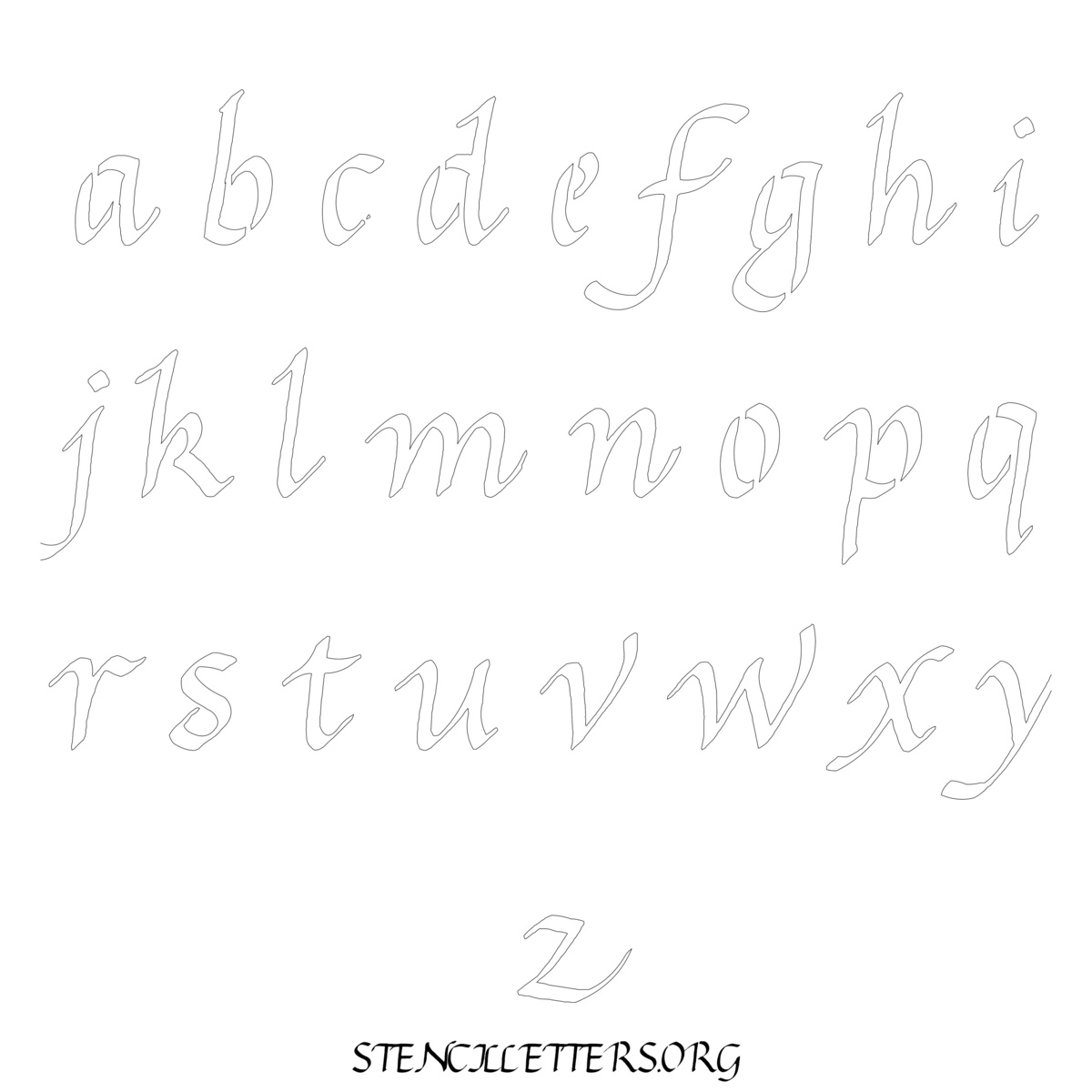 Stencil Design 166 Calligraphy. Print these free lowercase letter stencils and make your own DIY templates for your stenciling projects. Available in high resolution printable sizes: 4 Inch, 5 Inch, 6 Inch, 7 Inch, 8 Inch, 9 Inch and 10 Inch.