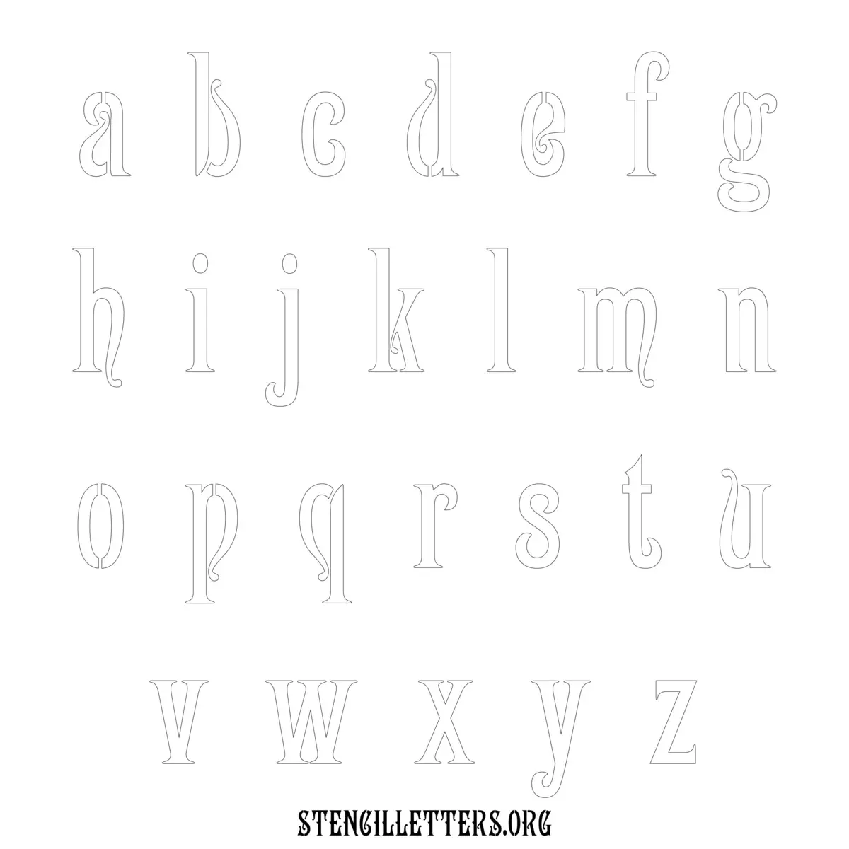 Printable Lowercase Alphabet Stencils - Design 192 Art Nouveau