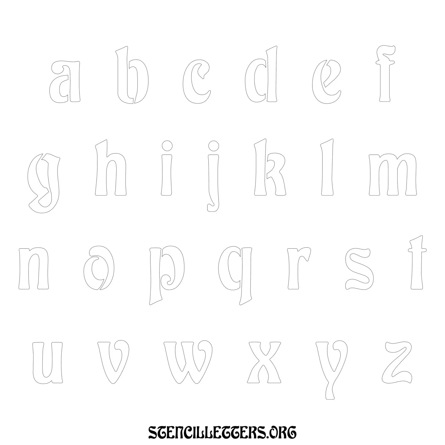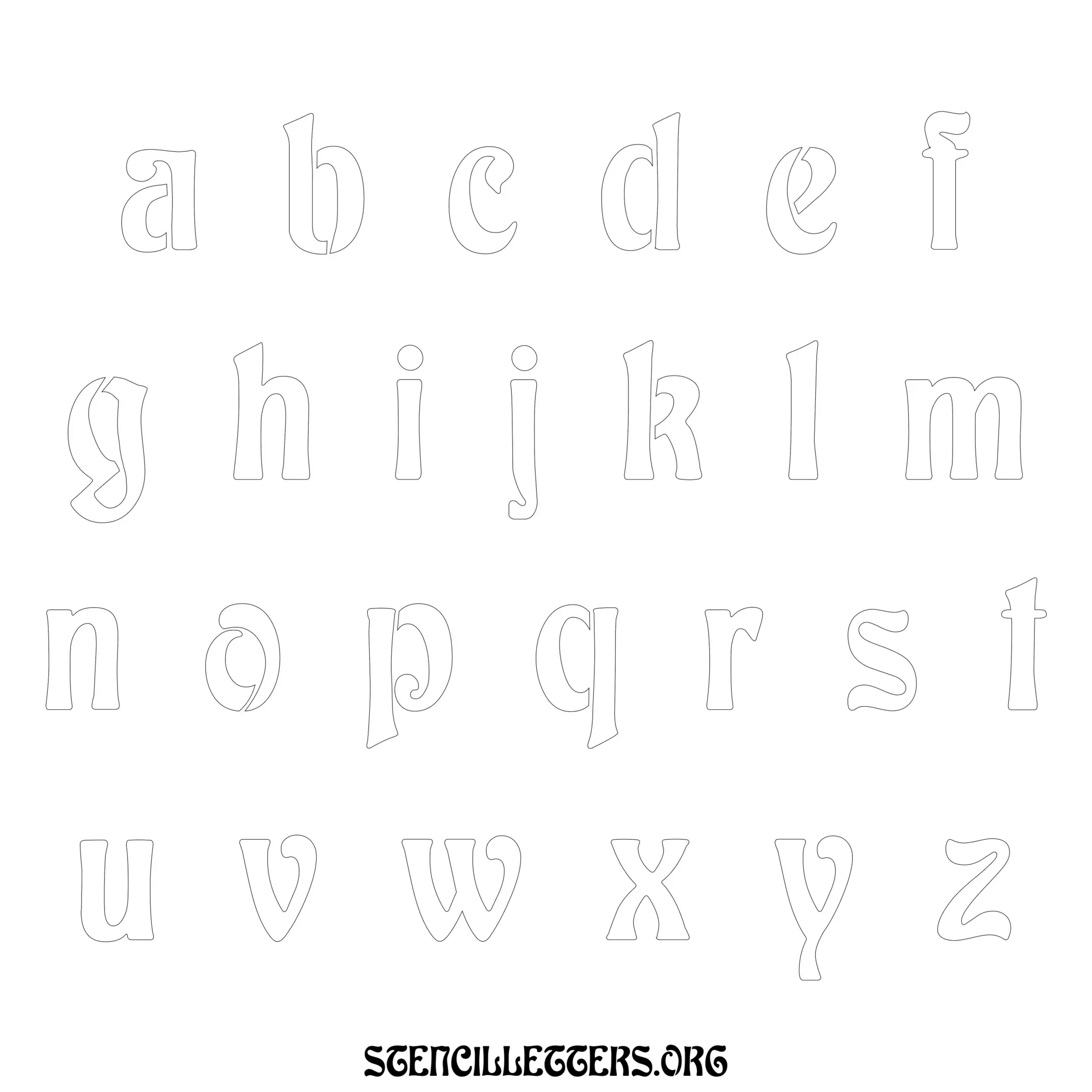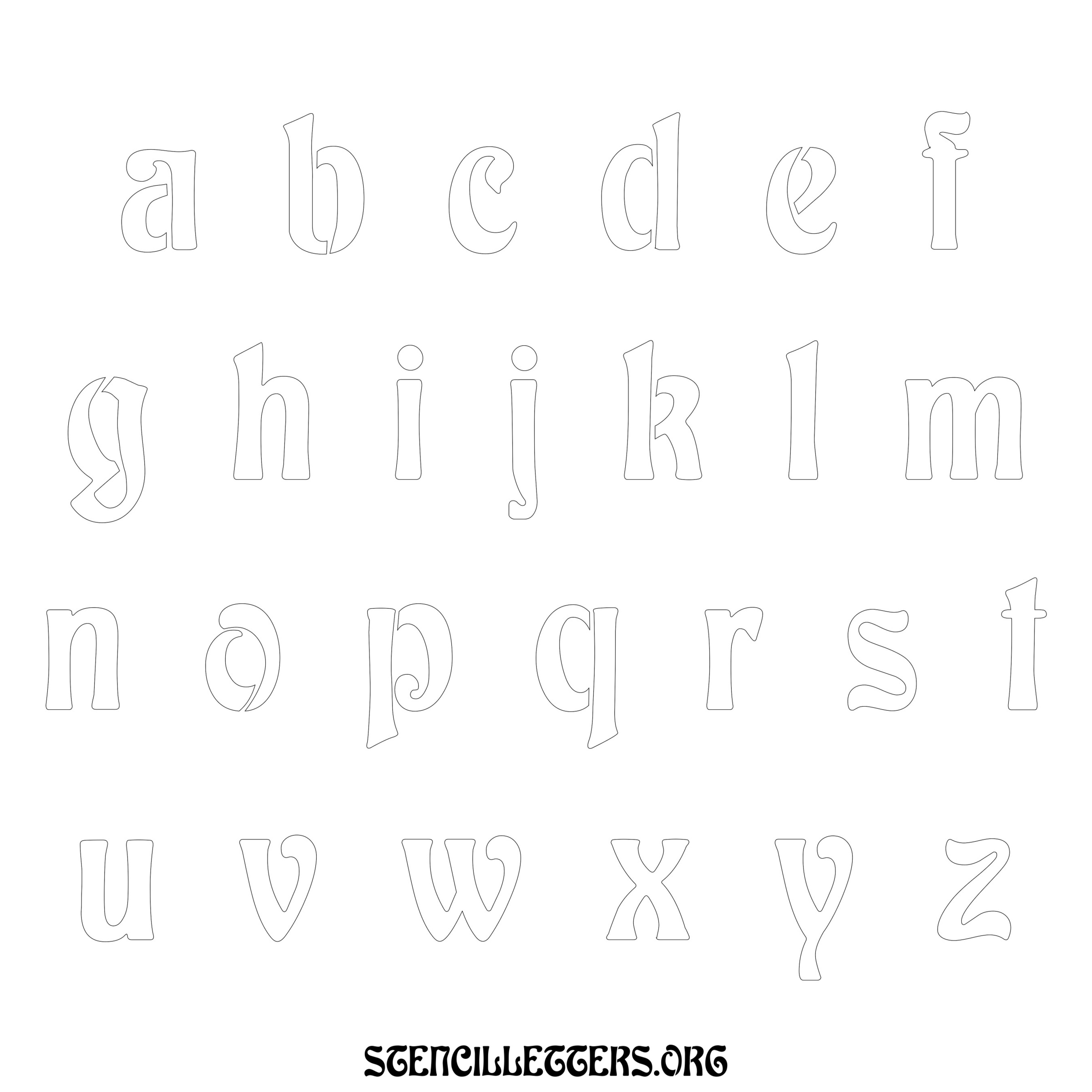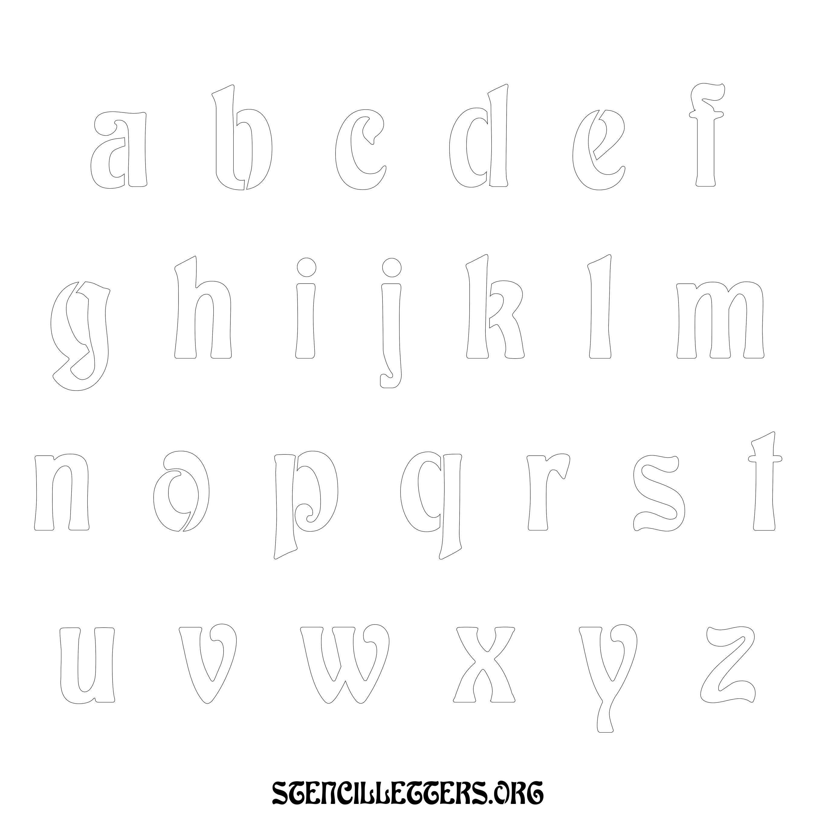 Printable Lowercase Alphabet Stencils - Design 196 Art Nouveau