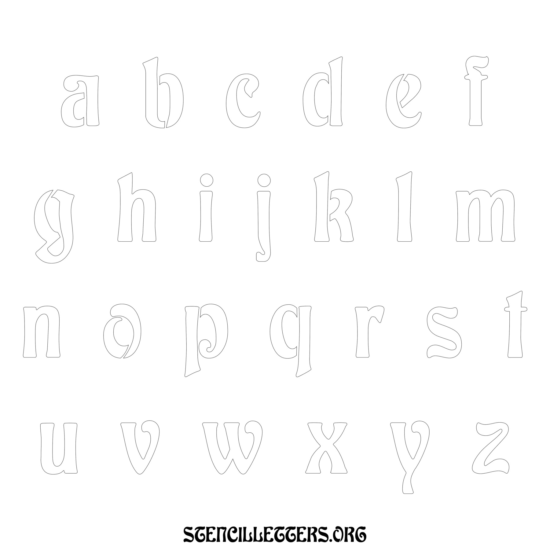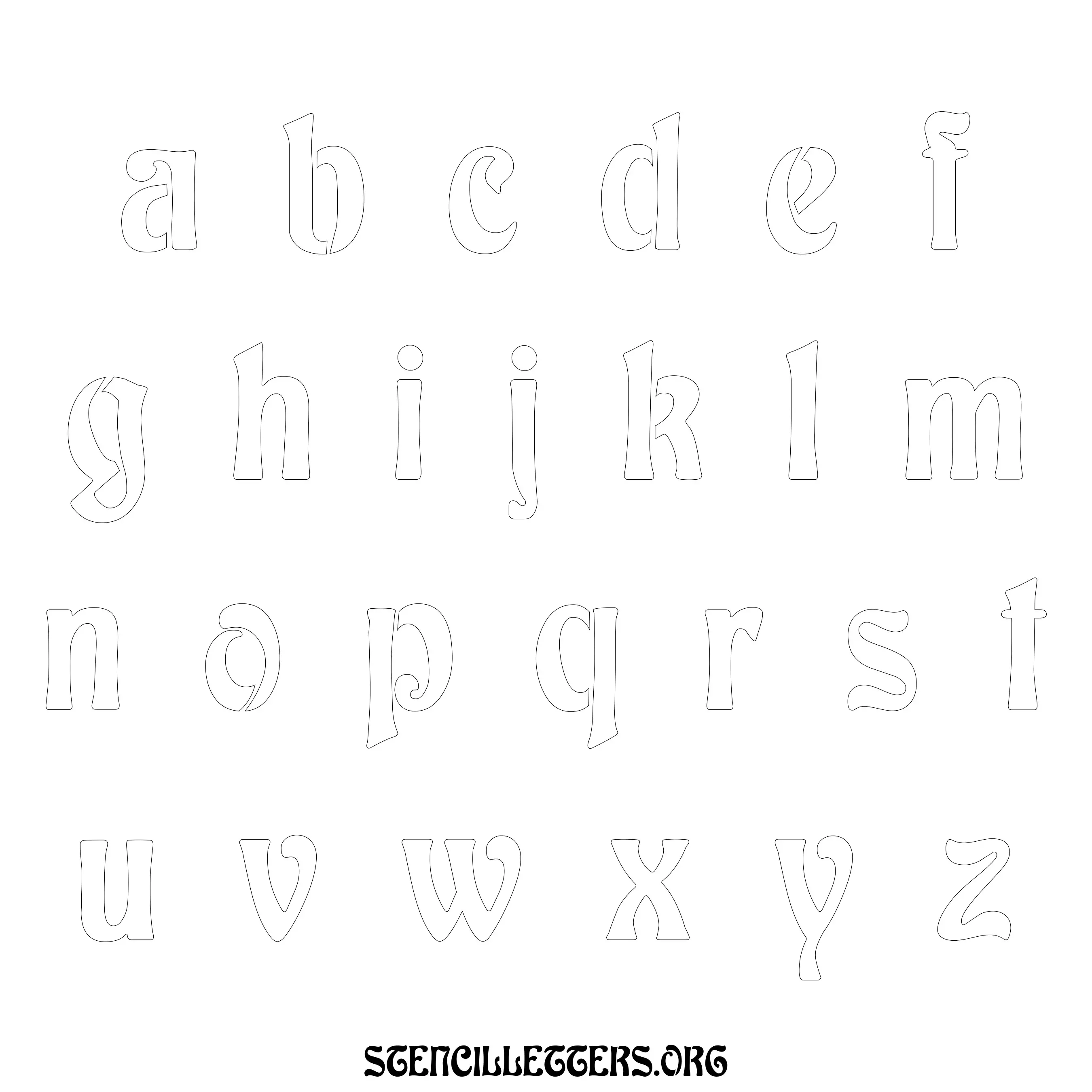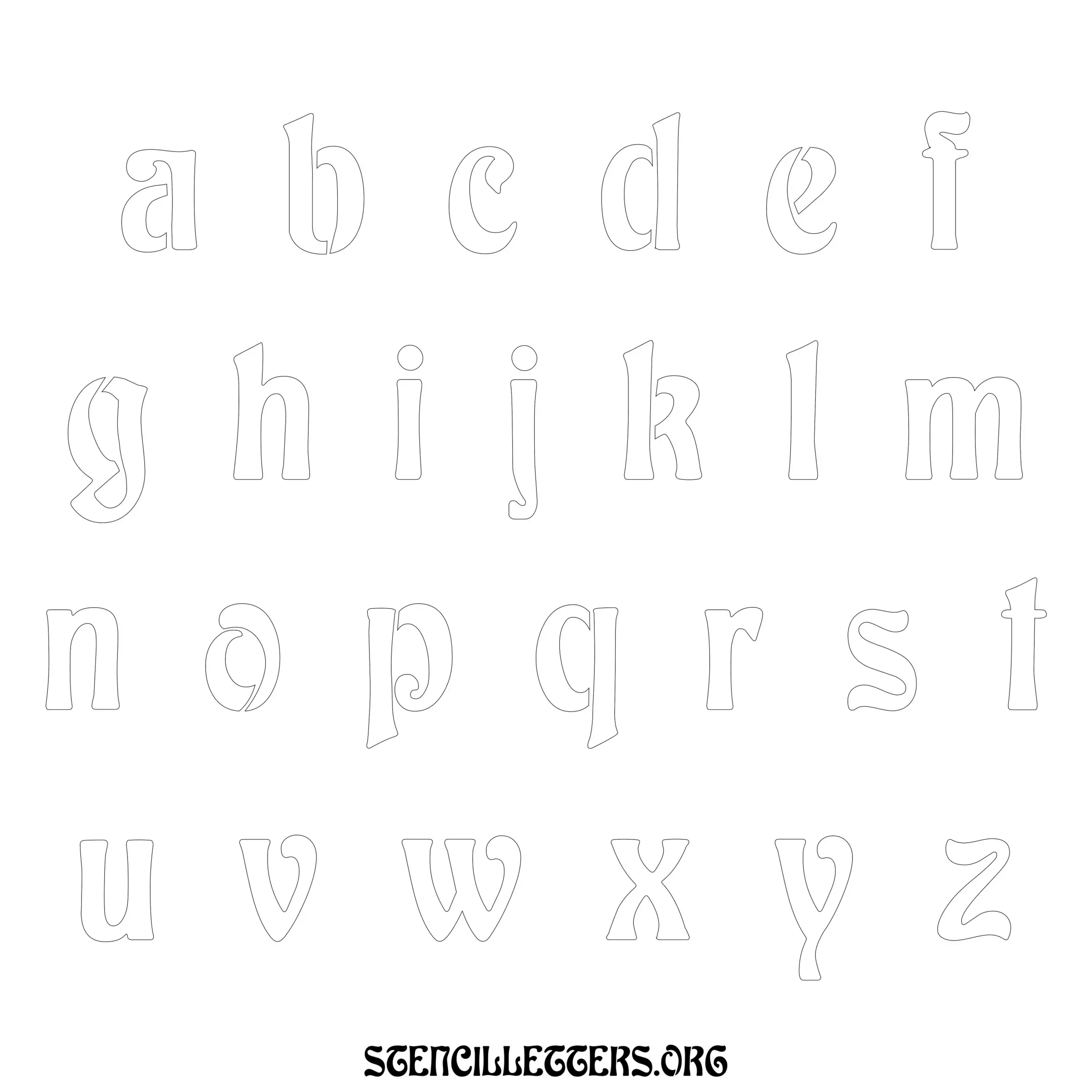 Printable Lowercase Alphabet Stencils - Design 196 Art Nouveau
