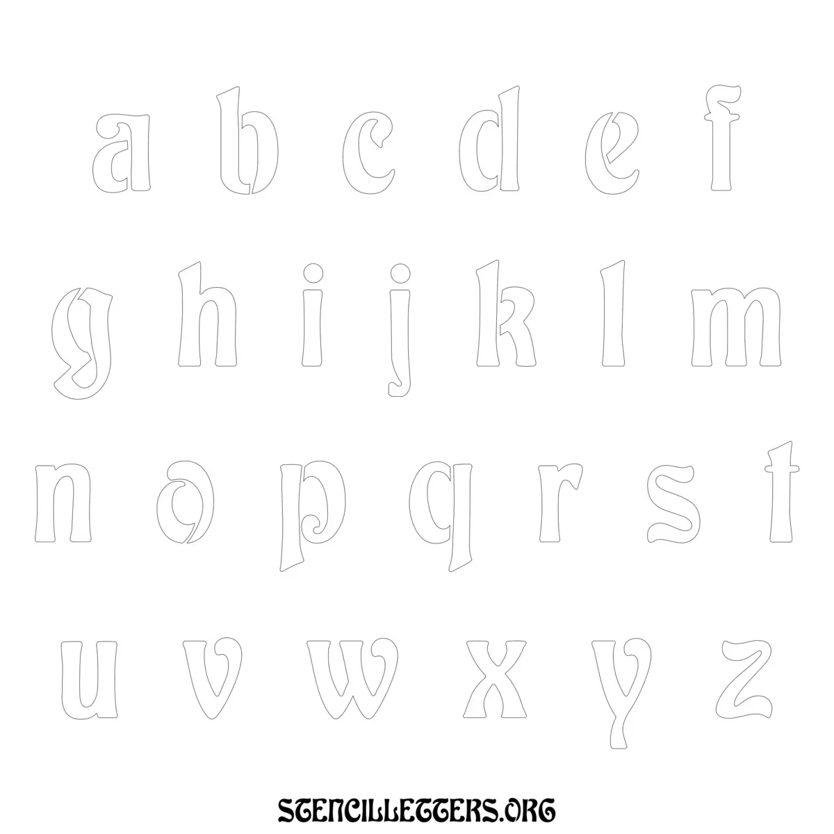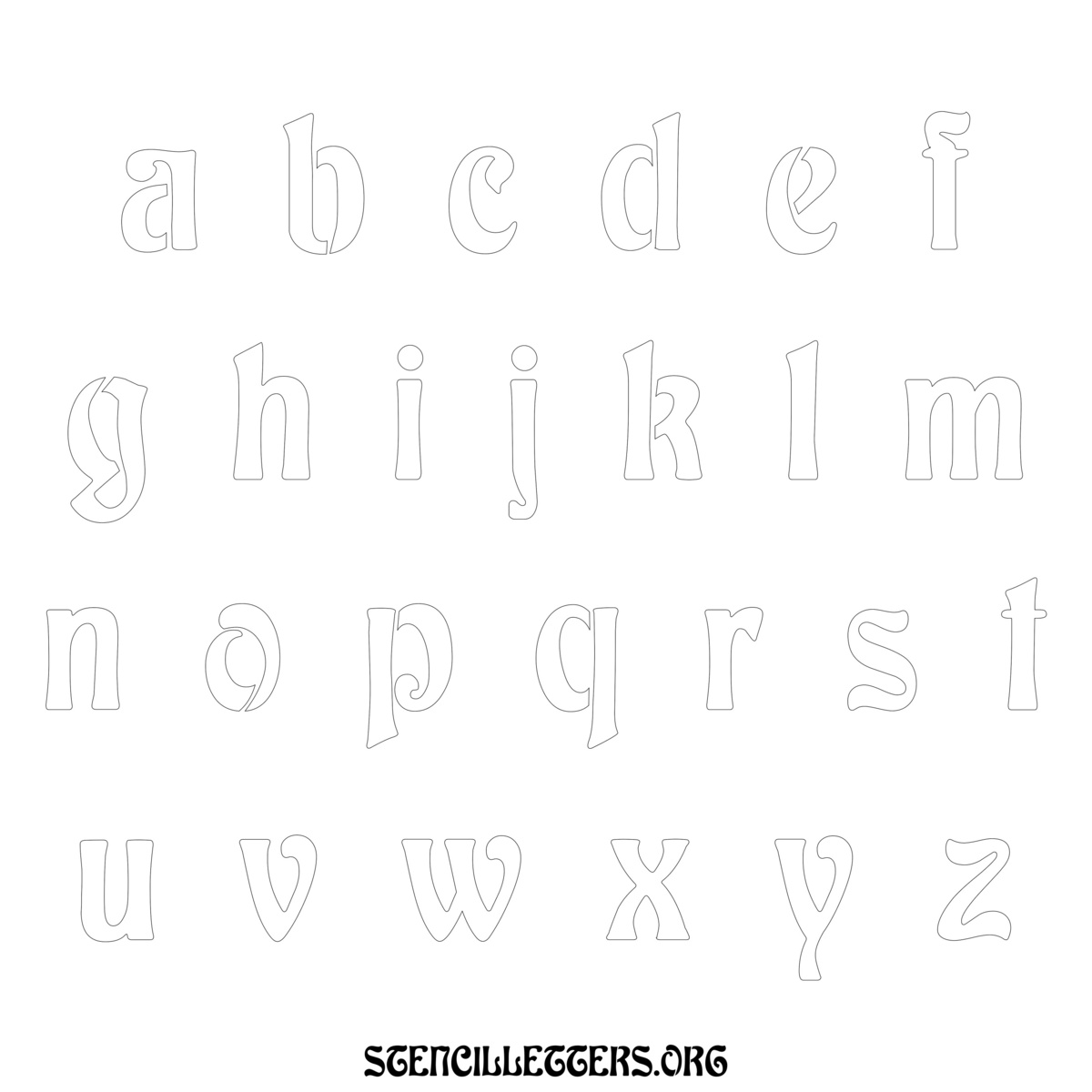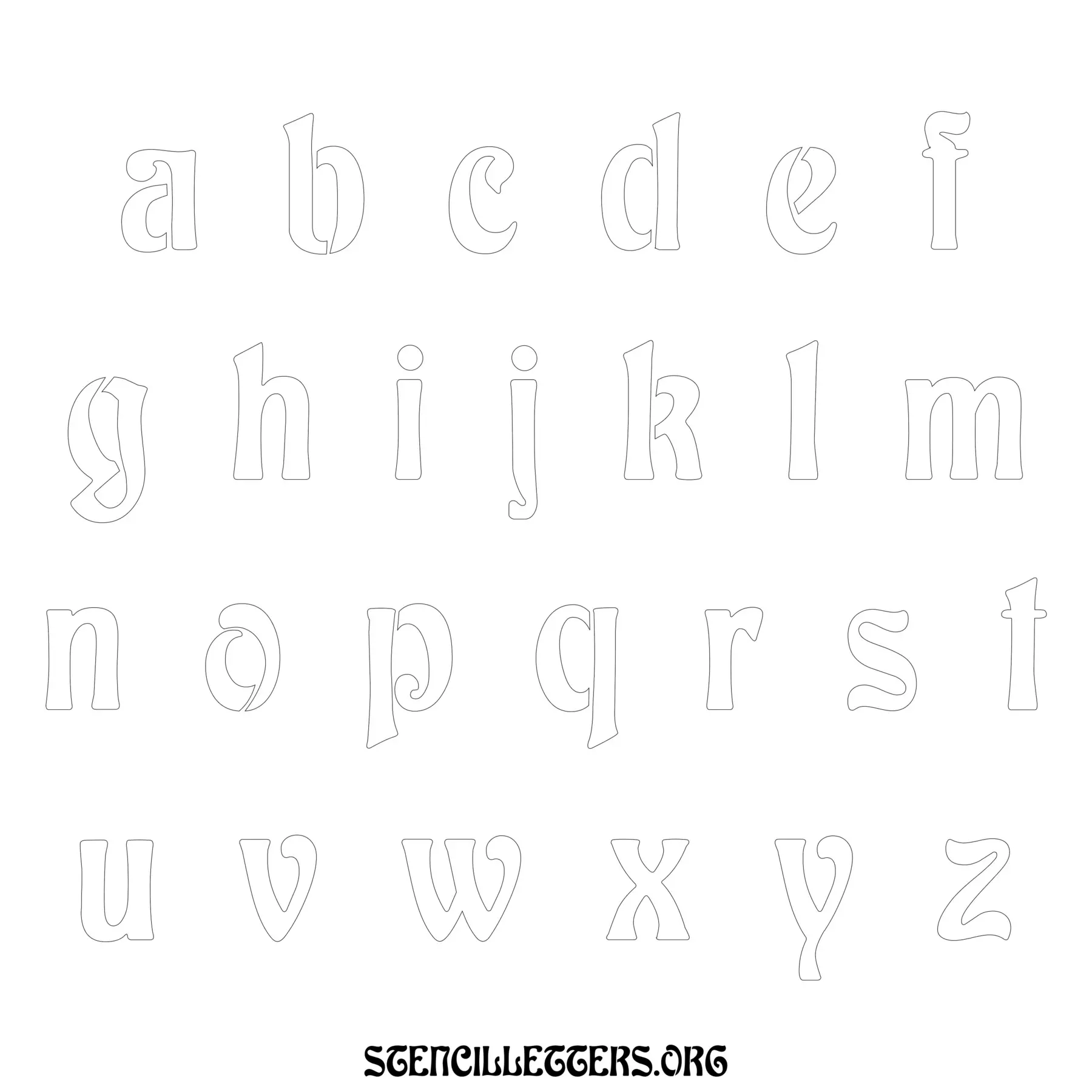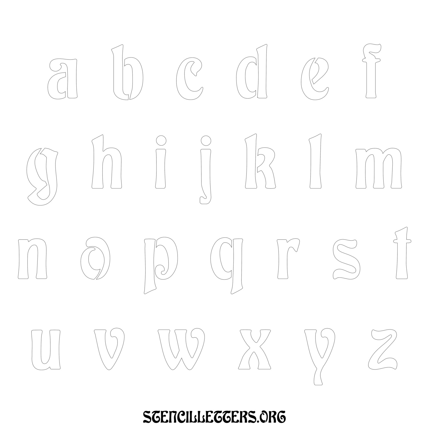 Printable Lowercase Alphabet Stencils - Design 196 Art Nouveau