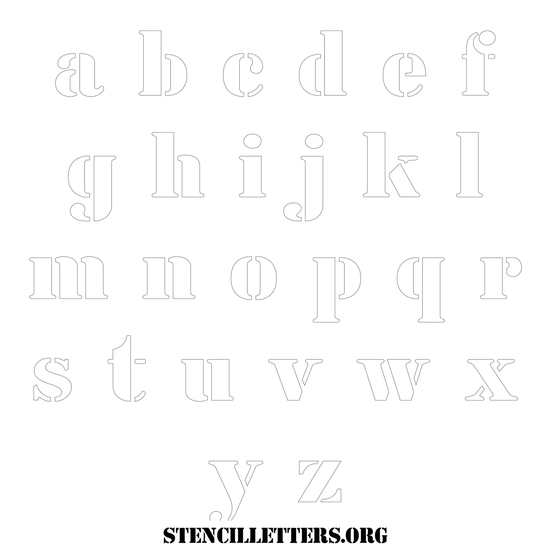 Stencil Design 253 Army. Print these free lowercase letter stencils and make your own DIY templates for your stenciling projects. Available in high resolution printable sizes: 4 Inch, 5 Inch, 6 Inch, 7 Inch, 8 Inch, 9 Inch and 10 Inch.