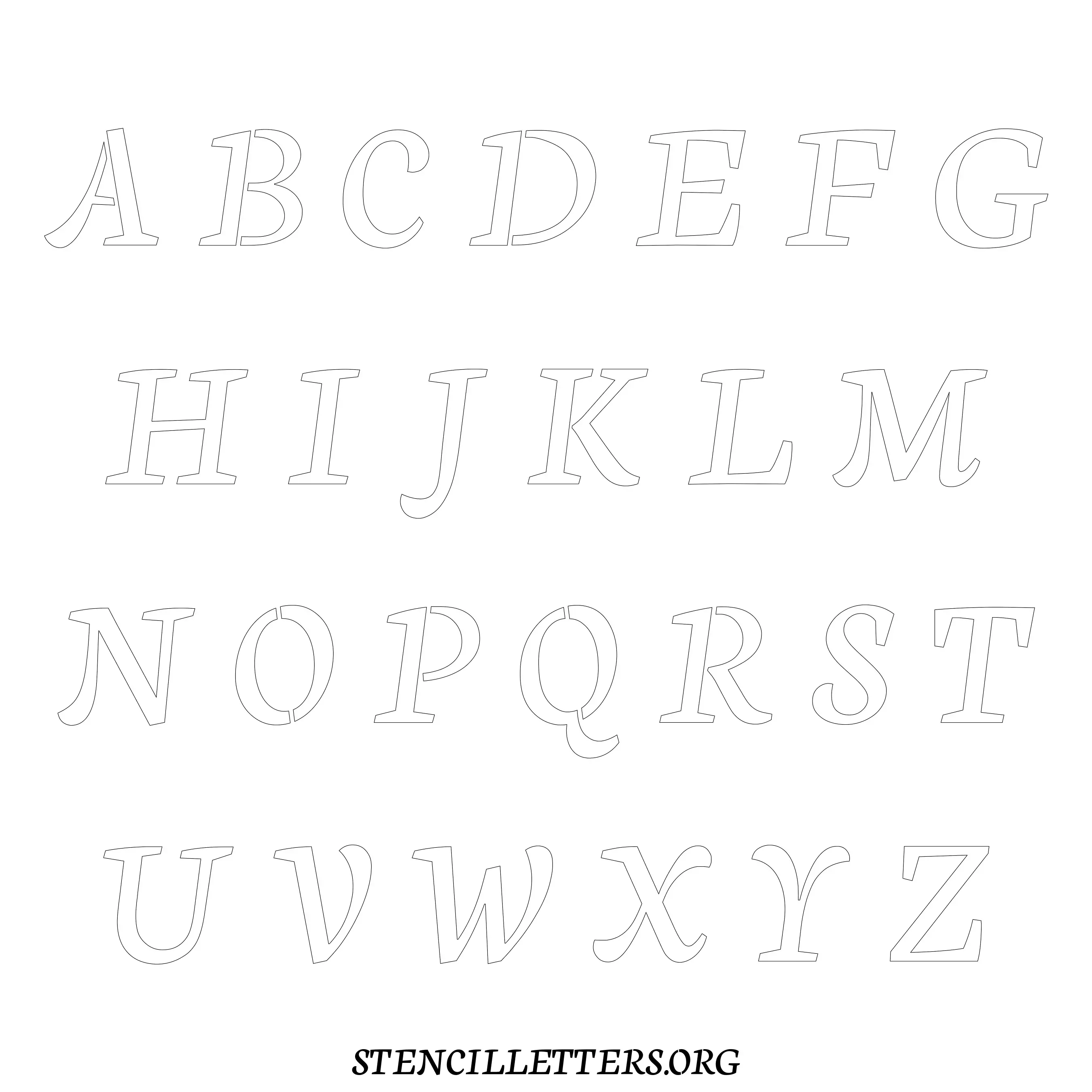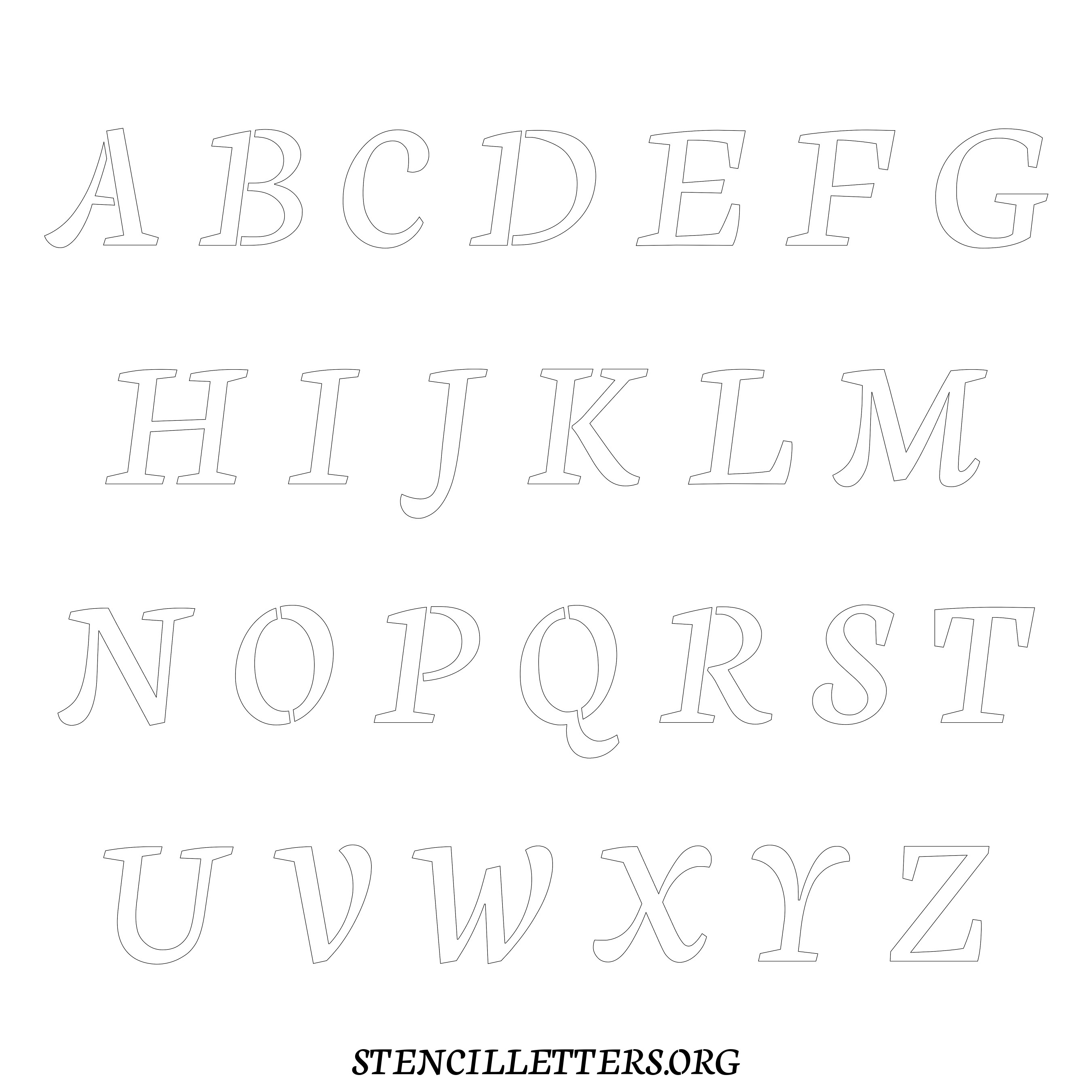 Printable Uppercase Alphabet Stencils - Design 146 Cursive