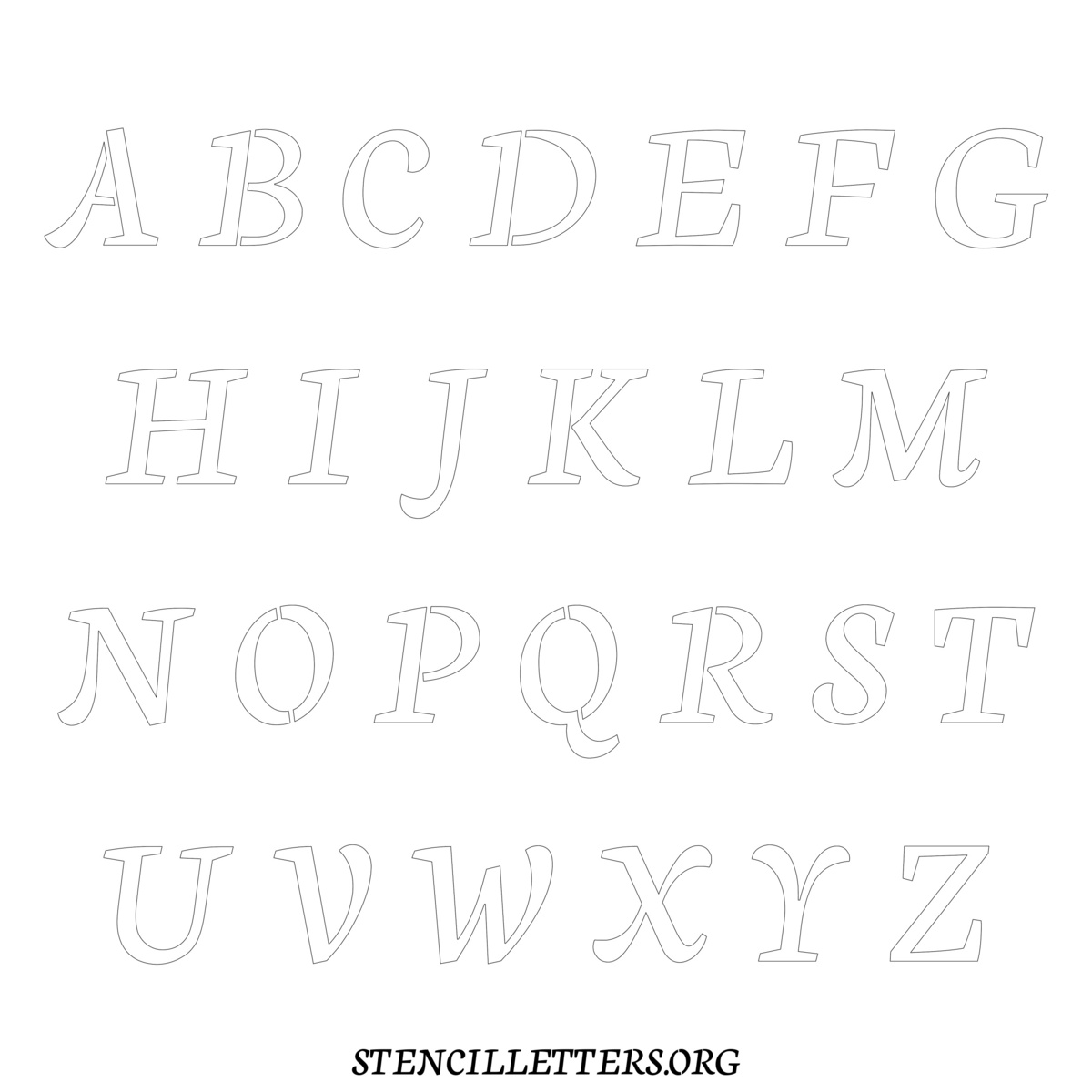 Stencil Design 146 Cursive. Print these free uppercase letter stencils and make your own DIY templates for your stenciling projects. Available in high resolution printable sizes: 4 Inch, 5 Inch, 6 Inch, 7 Inch, 8 Inch, 9 Inch and 10 Inch.