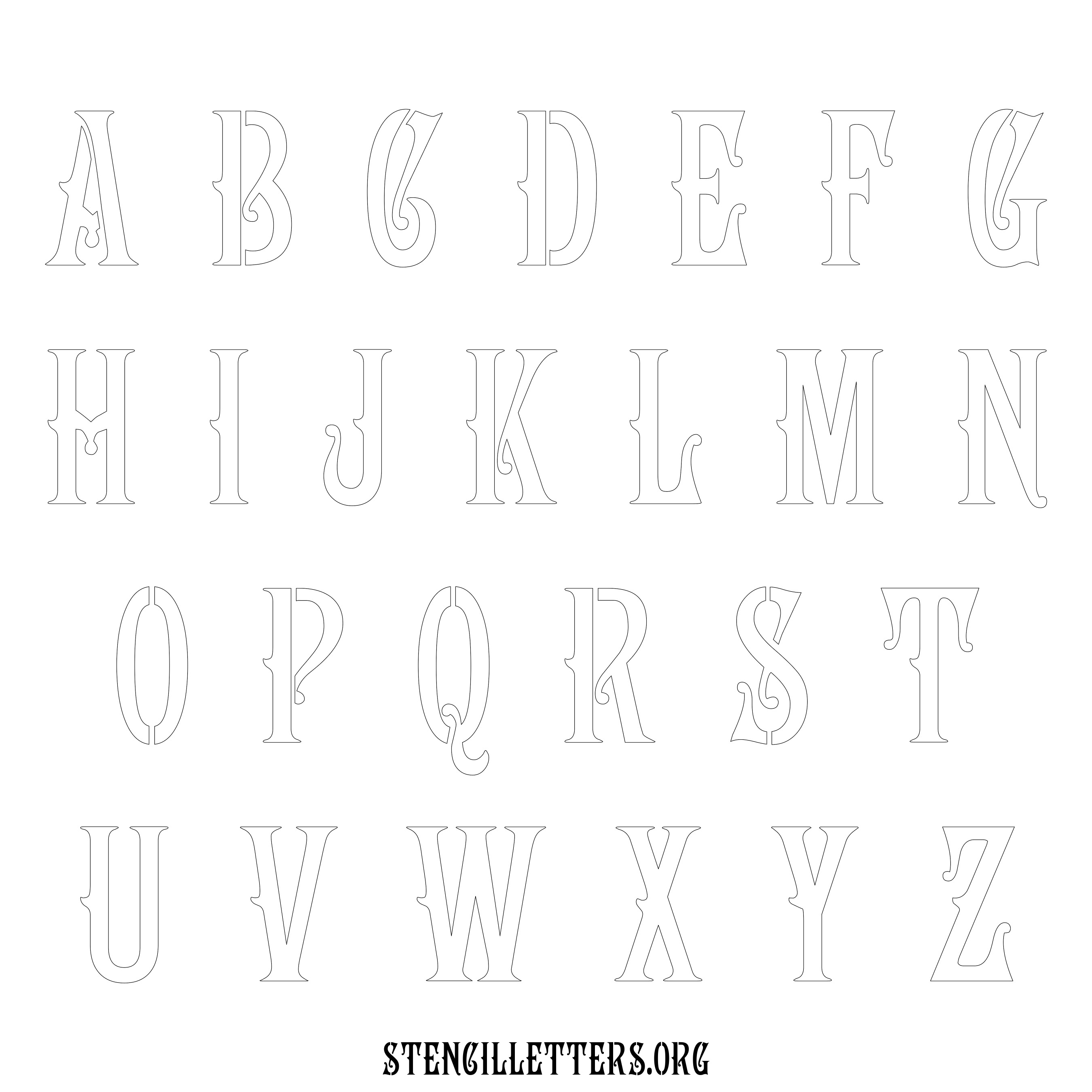 Stencil Design 192 Art Nouveau. Print these free uppercase letter stencils and make your own DIY templates for your stenciling projects. Available in high resolution printable sizes: 4 Inch, 5 Inch, 6 Inch, 7 Inch, 8 Inch, 9 Inch and 10 Inch.