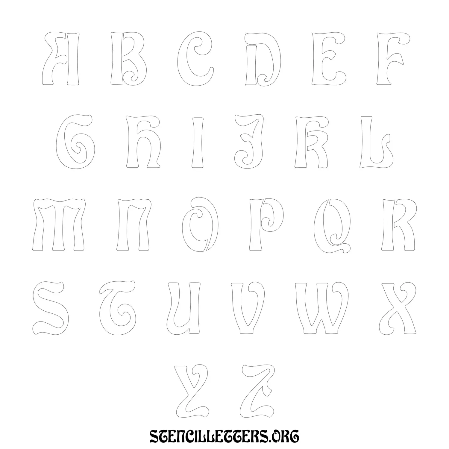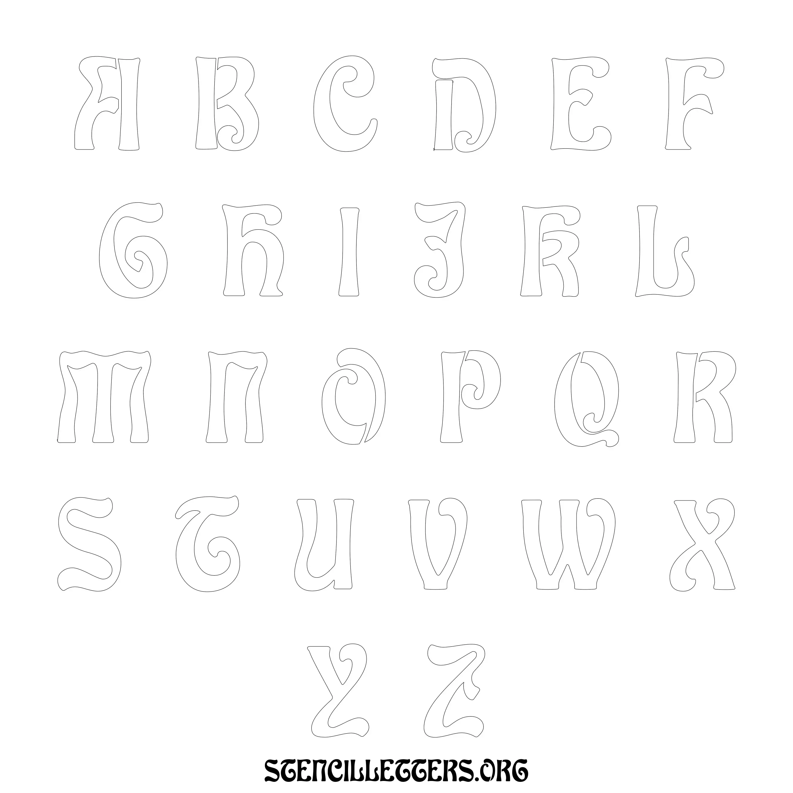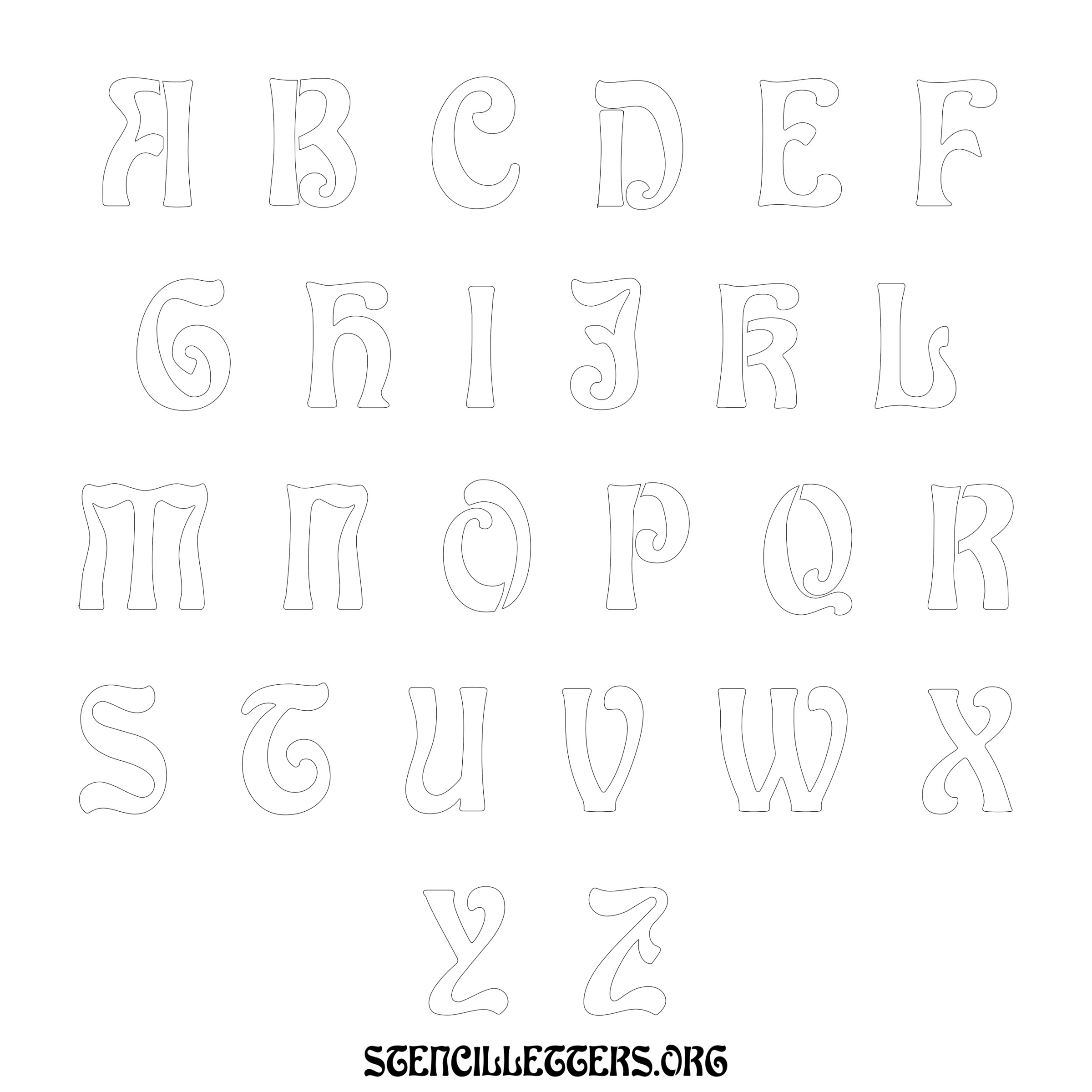 Printable Uppercase Alphabet Stencils - Design 196 Art Nouveau