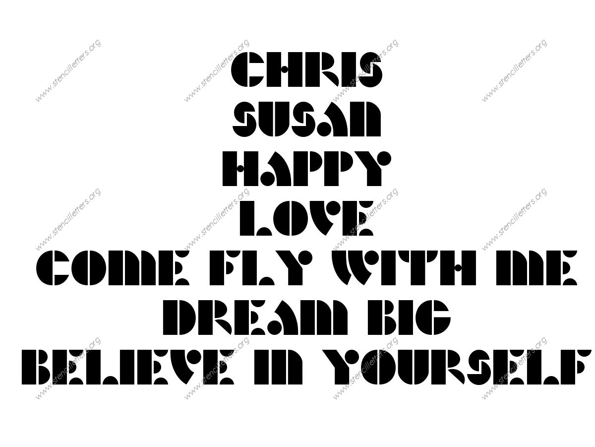 A heavy bold Art deco letter stencil set with decorative art style characteristics of the 1920s and 1930s. This stencil is simply beautiful geometric architecture.