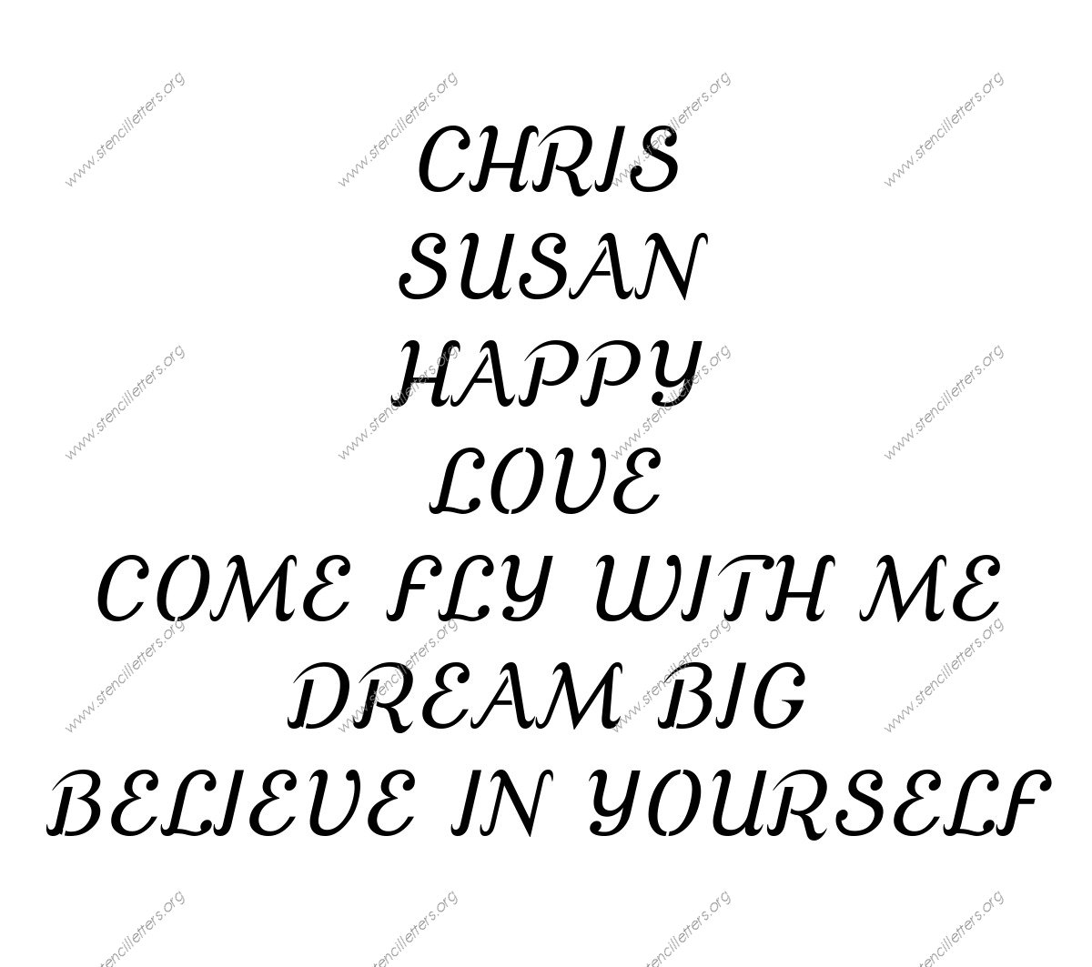 Grand Ornamental Cursive lowercase stencil Names, Words, Phrases samples