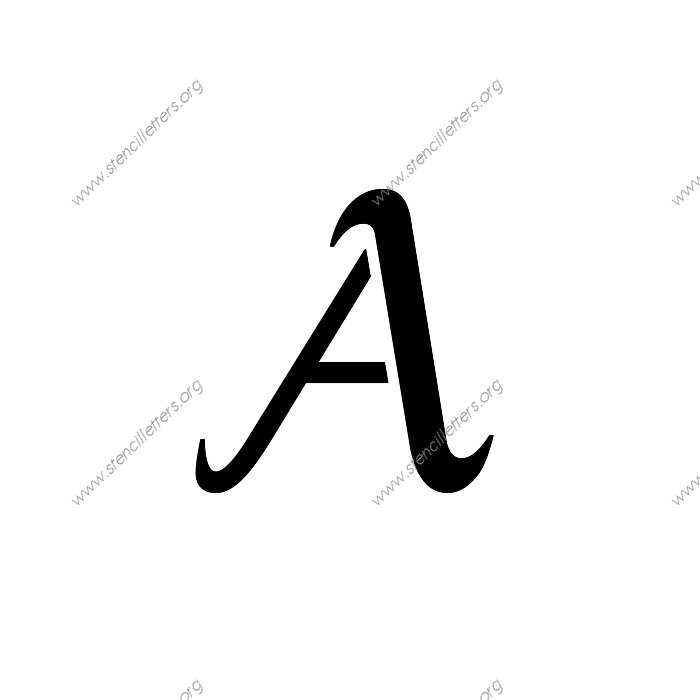 Grand Ornamental Cursive A to Z uppercase and lowercase letter stencils available in sizes from 1 inch up to 36 inches. This Grand Ornamental Cursive design is listed in the {Cursive stencils} selection.