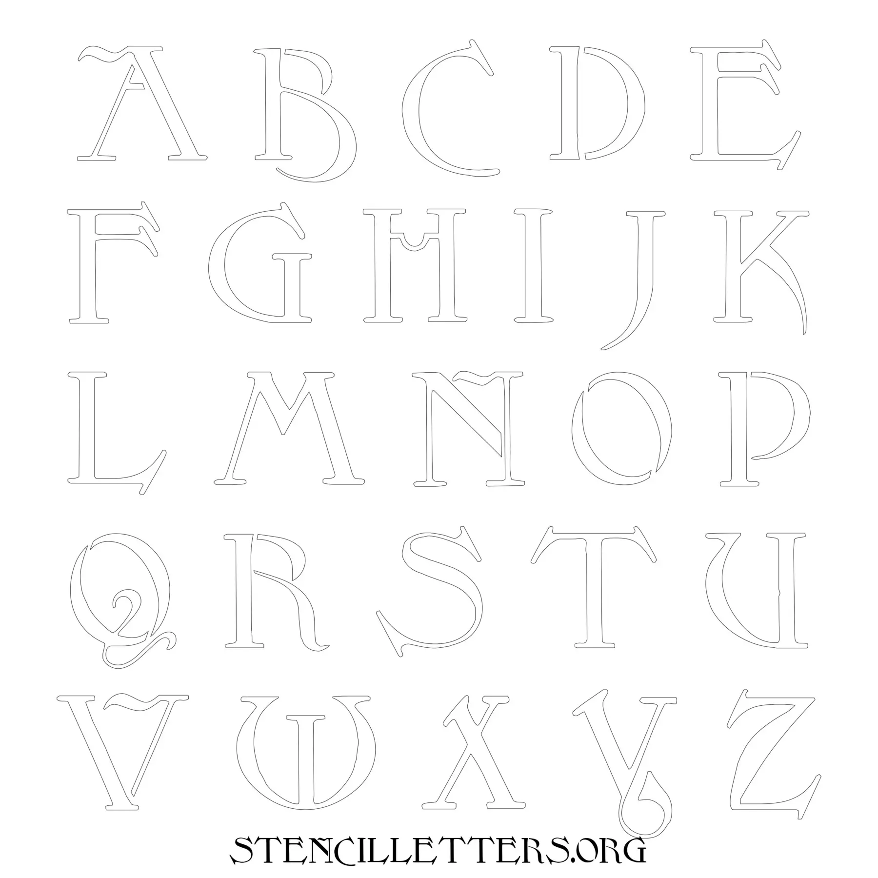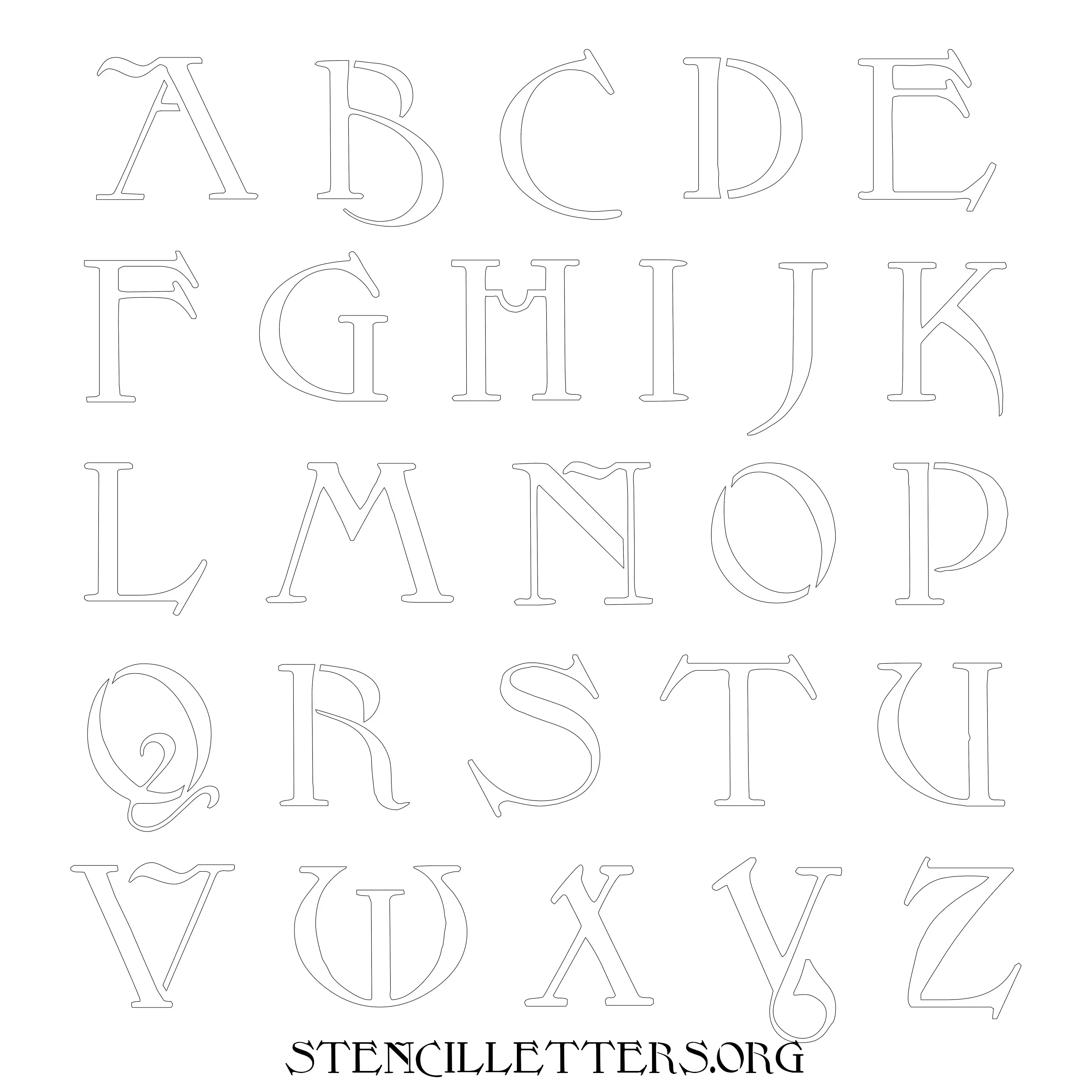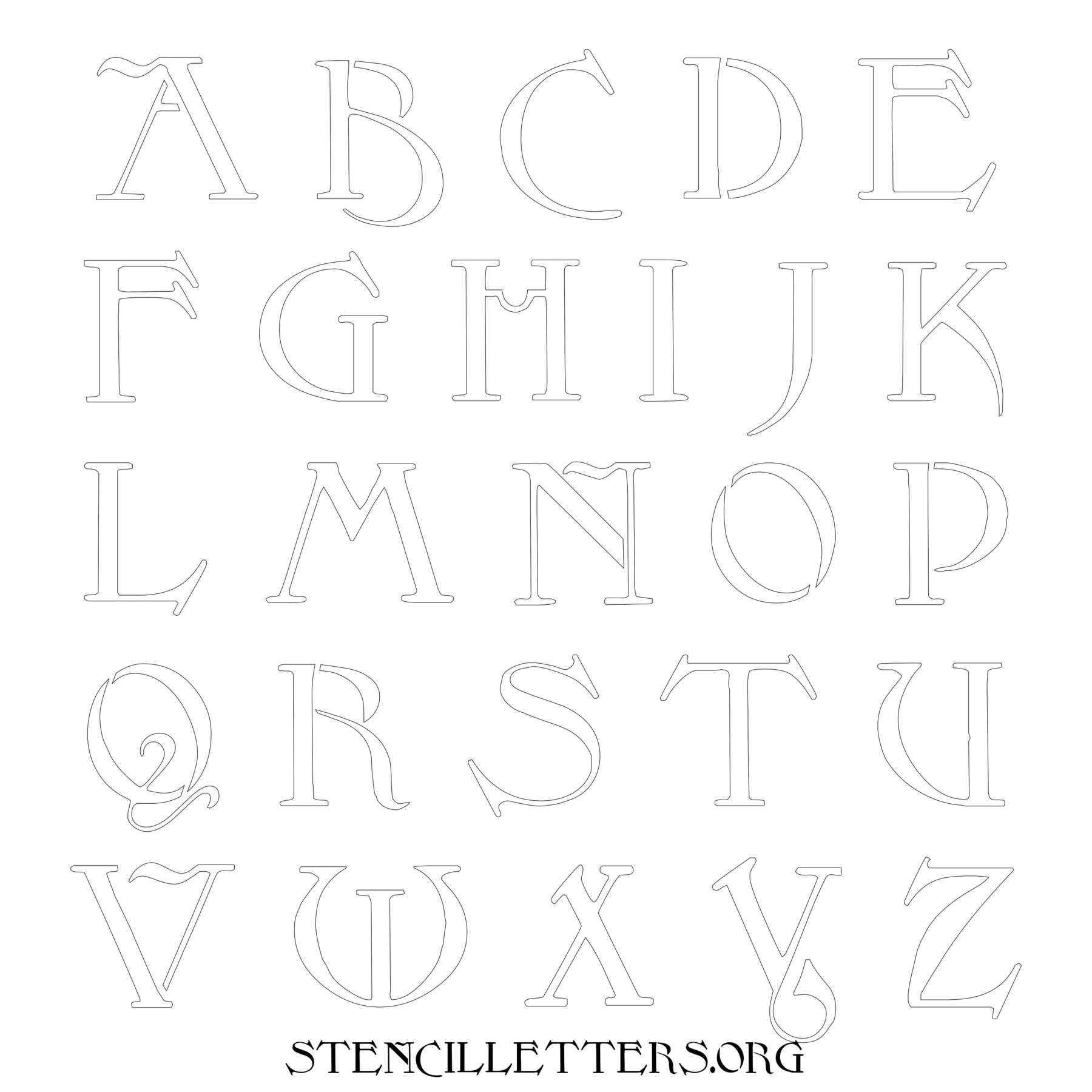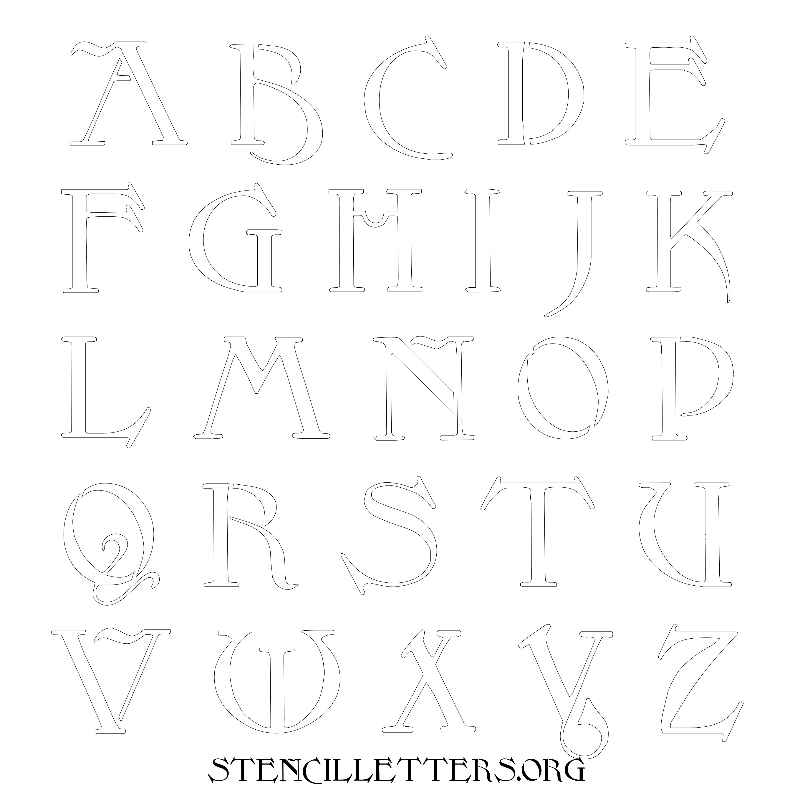 Printable Uppercase Alphabet Stencils - Design 194 Art Nouveau