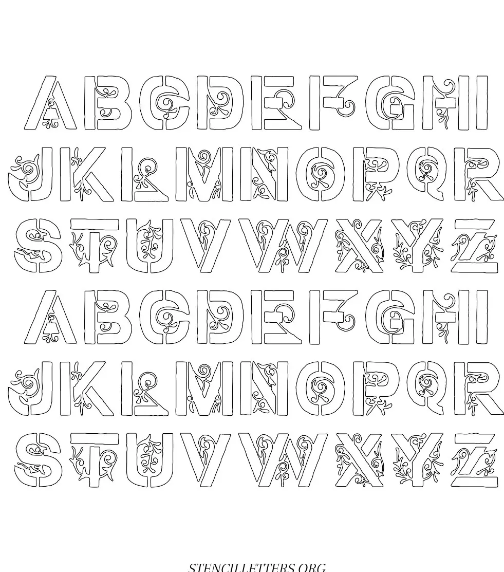 Decorative Gothic free printable letter stencilsDecorative Gothic free printable letter stencils in uppercase and lowercase with outline cutout alphabet letters.