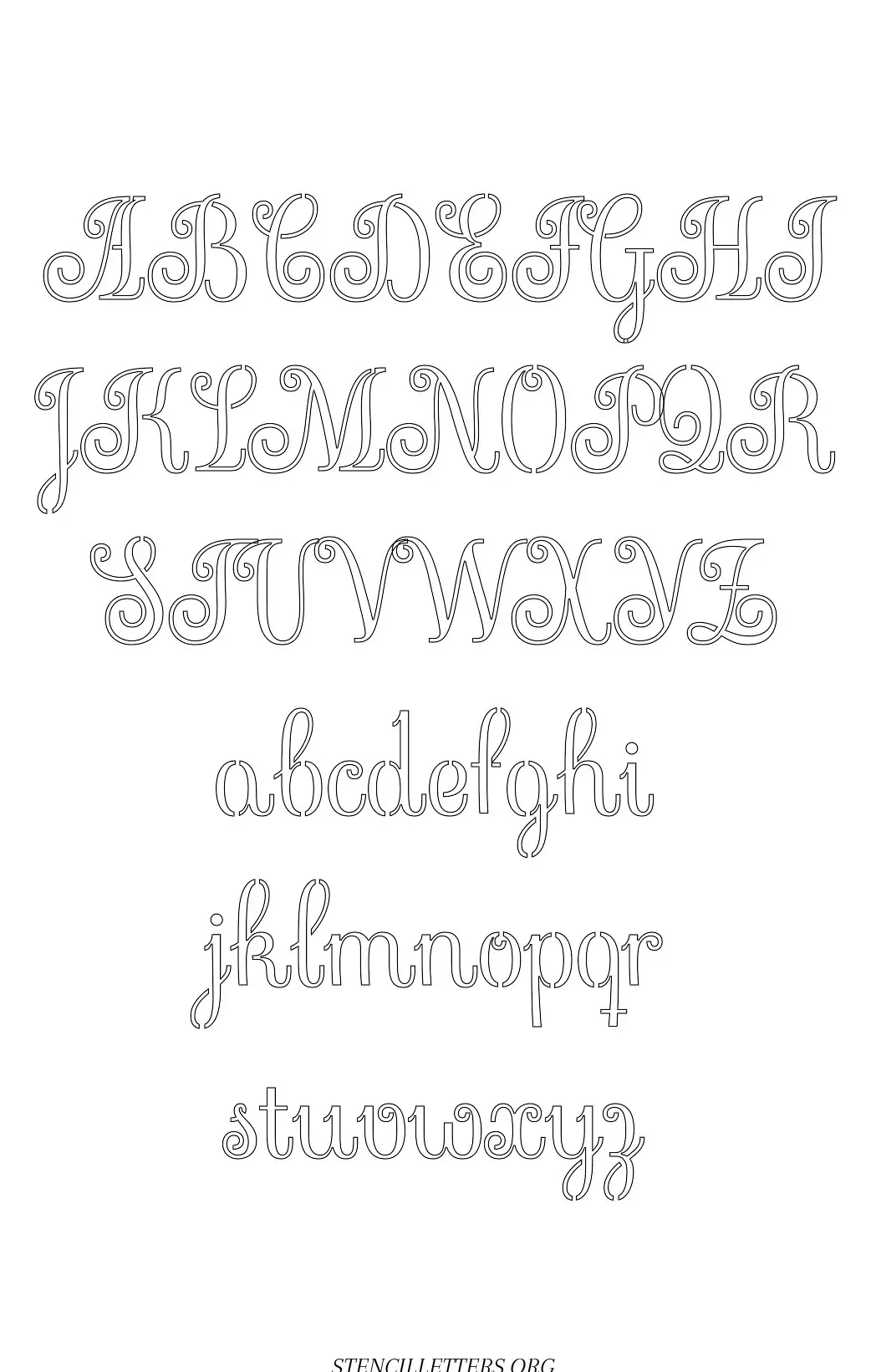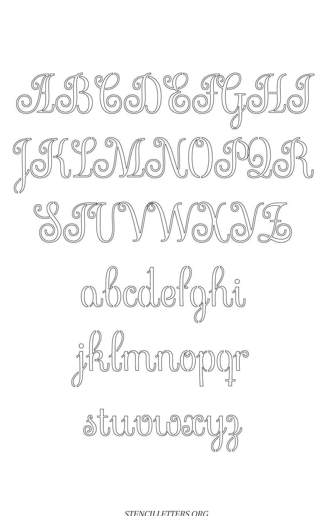 Exquisite Fine Cursive Capital A-Z, small a-z free stencil letter templates to print and cut out.