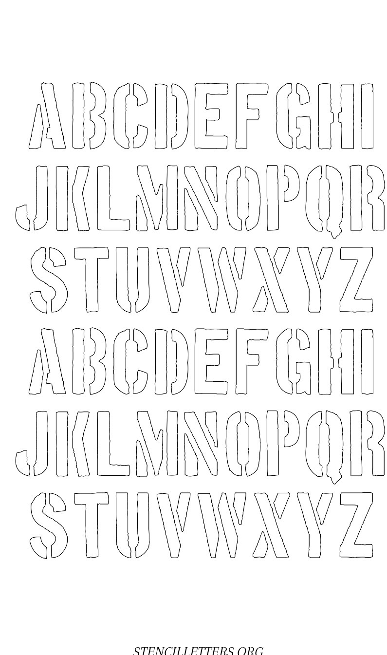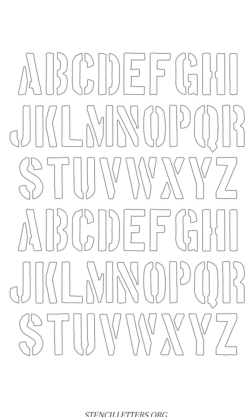 Rough Edge free printable letter stencilsRough Edge free printable letter stencils in uppercase and lowercase with outline cutout alphabet letters.