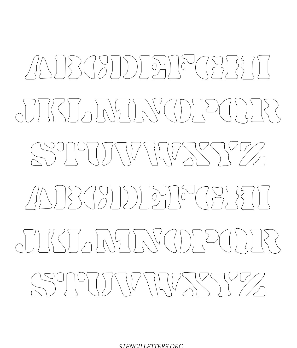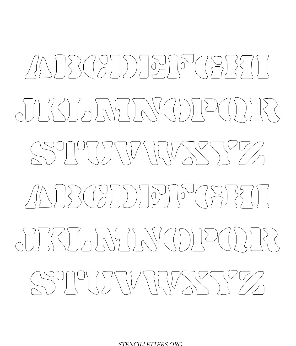 Stones Egde free printable letter stencils in uppercase and lowercase with outline cutout alphabet letters.
